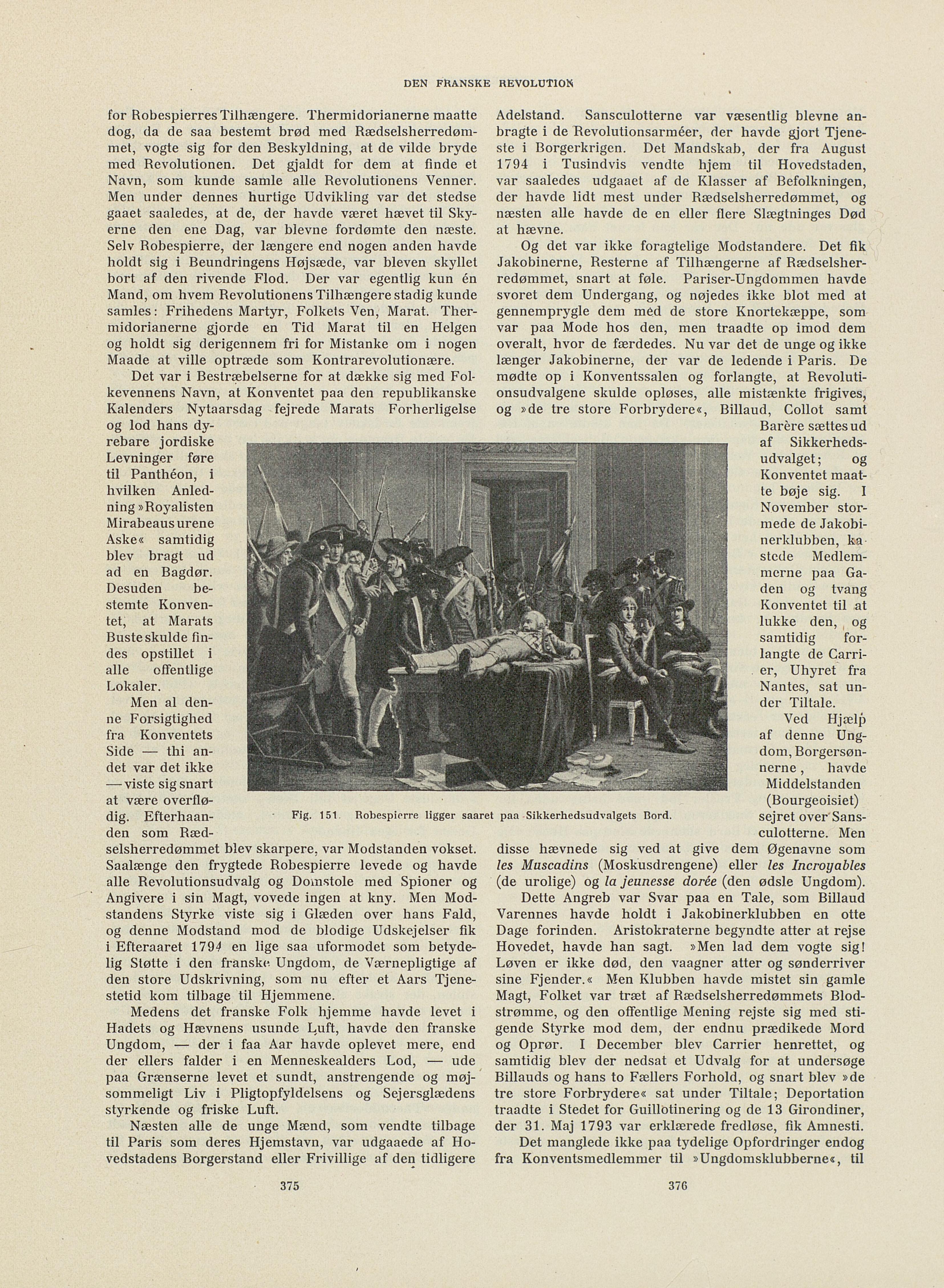 Fig. 151 Robespierre ligger saaret paa Sikkerhedsudvalgets Rord.