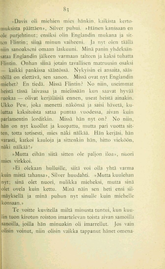 kertomuksista päättäen», Silver puhui. »Hänen kanssaan en
