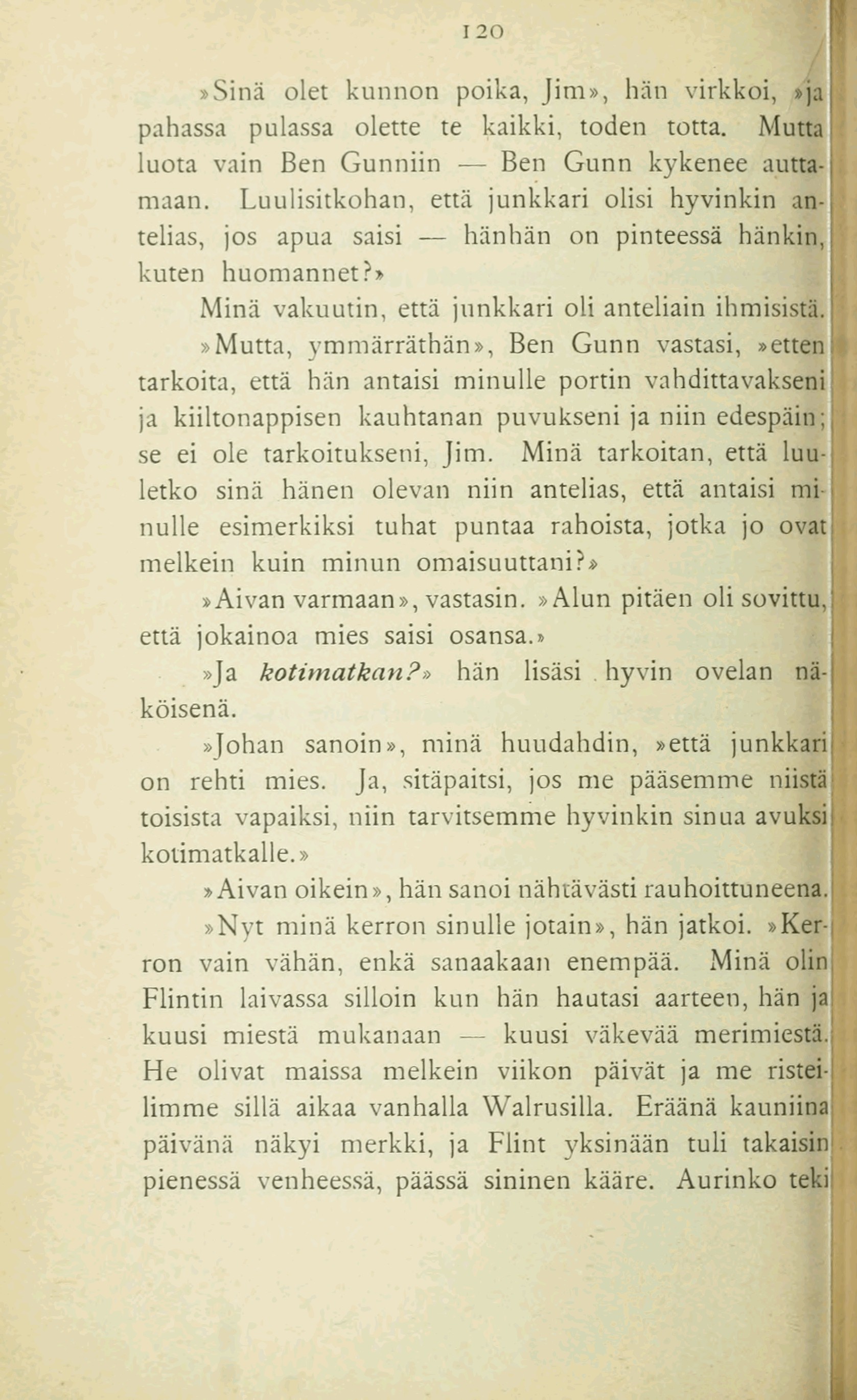 »Sinä olet kunnon poika, Jim», hän virkkoi, »ja