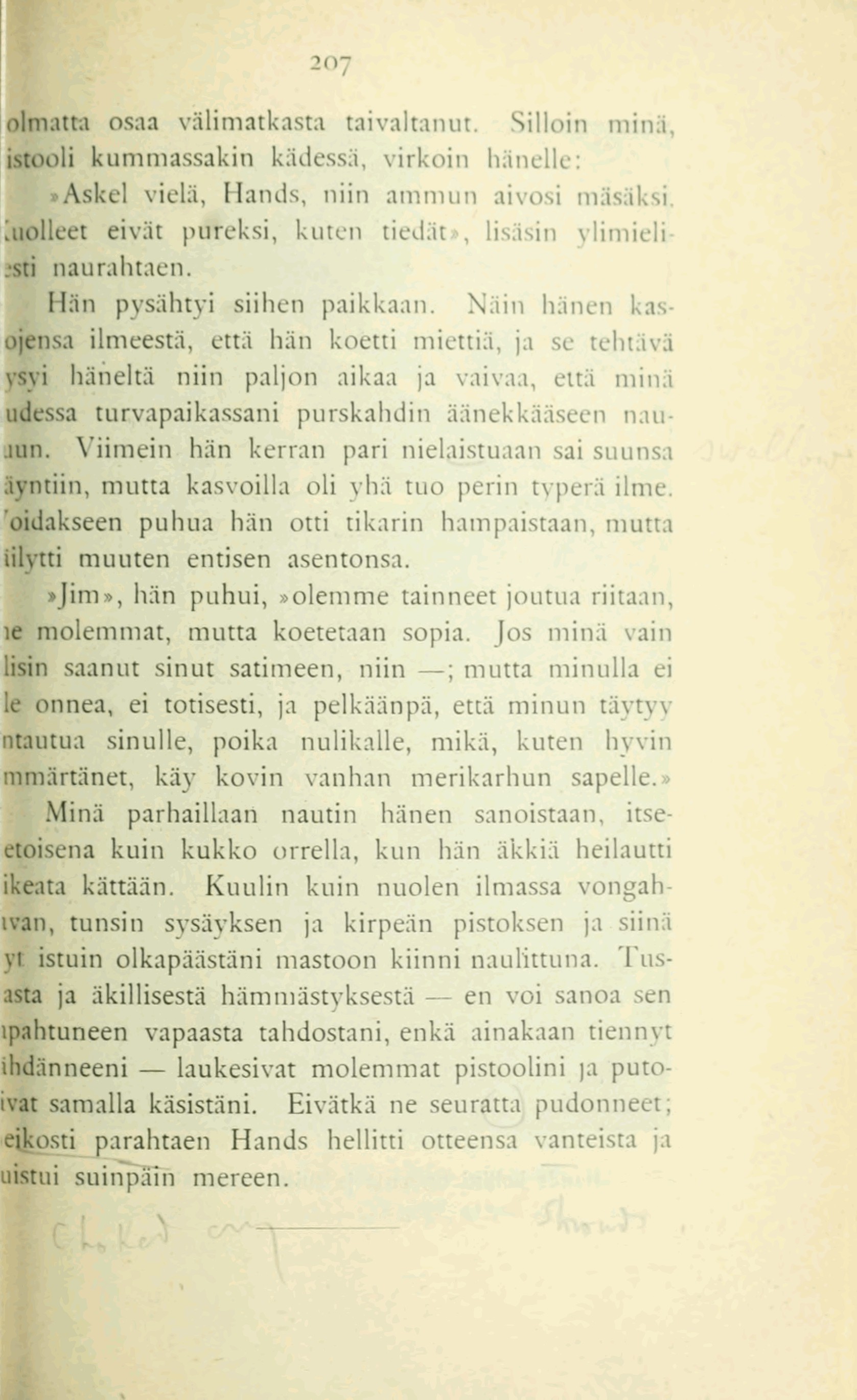 ikeata kättään. Kuulin kuin nuolen ilmassa