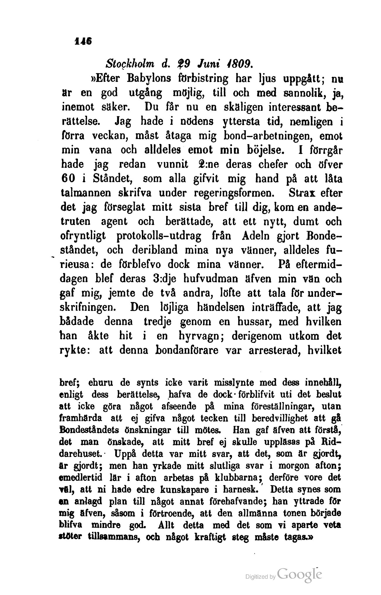 Stockholm d. 29 Juni 1809.