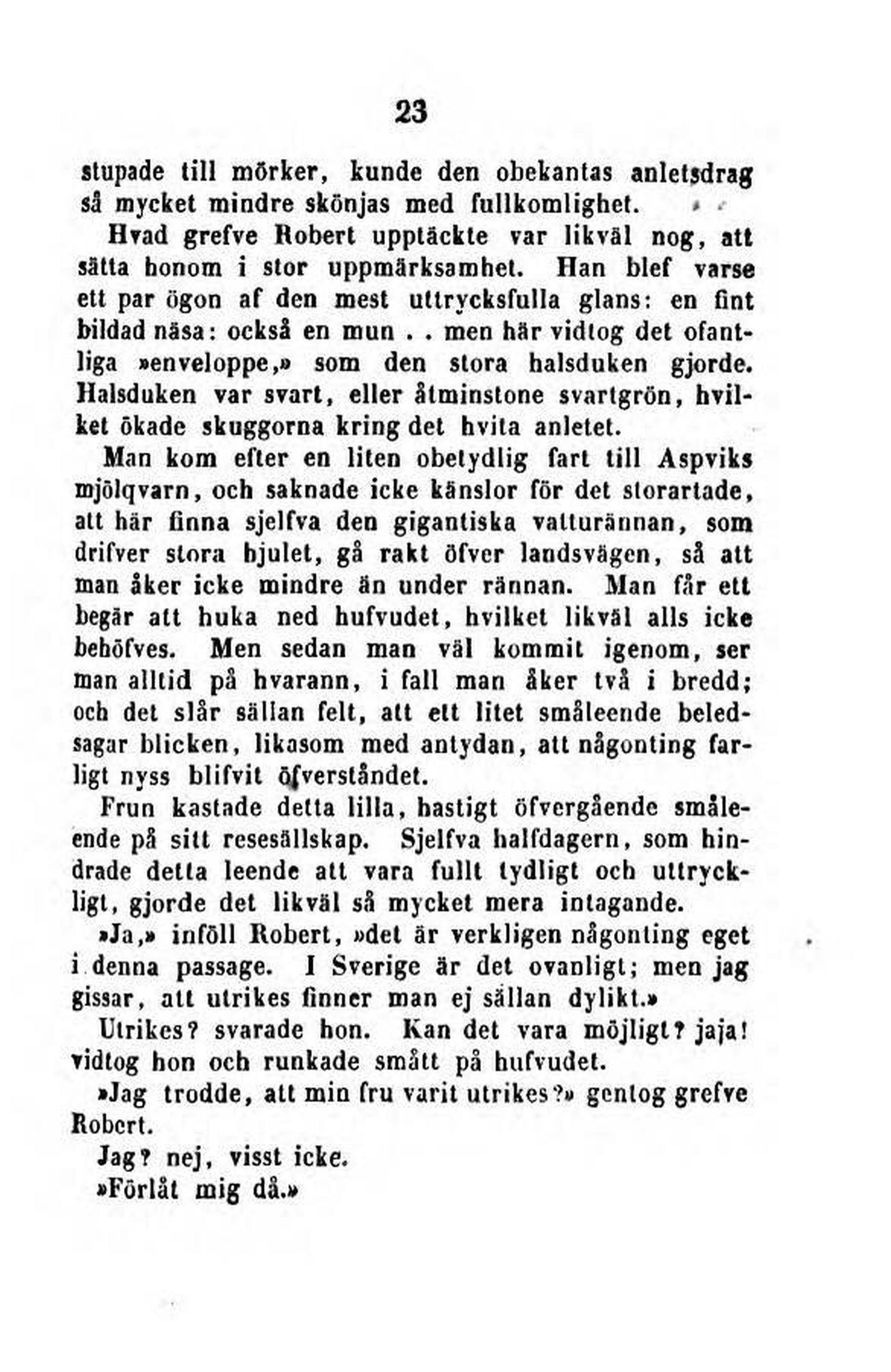 »Jag trodde, alt min fru varit utrikes?» genlog grefve