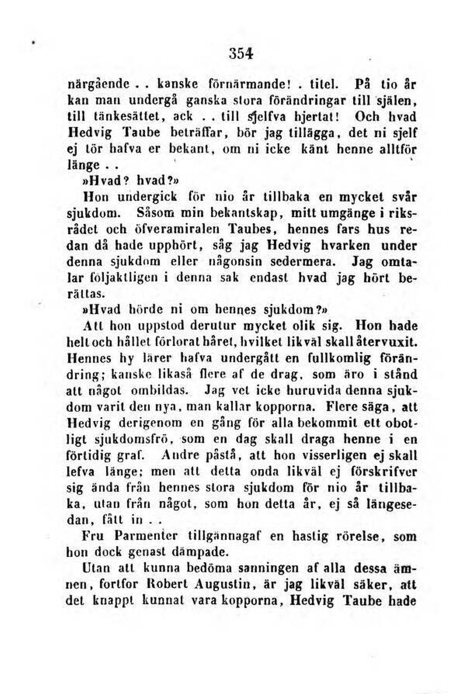 Hedvig Taube beträffar, bör jag tillägga, det ni sjelf