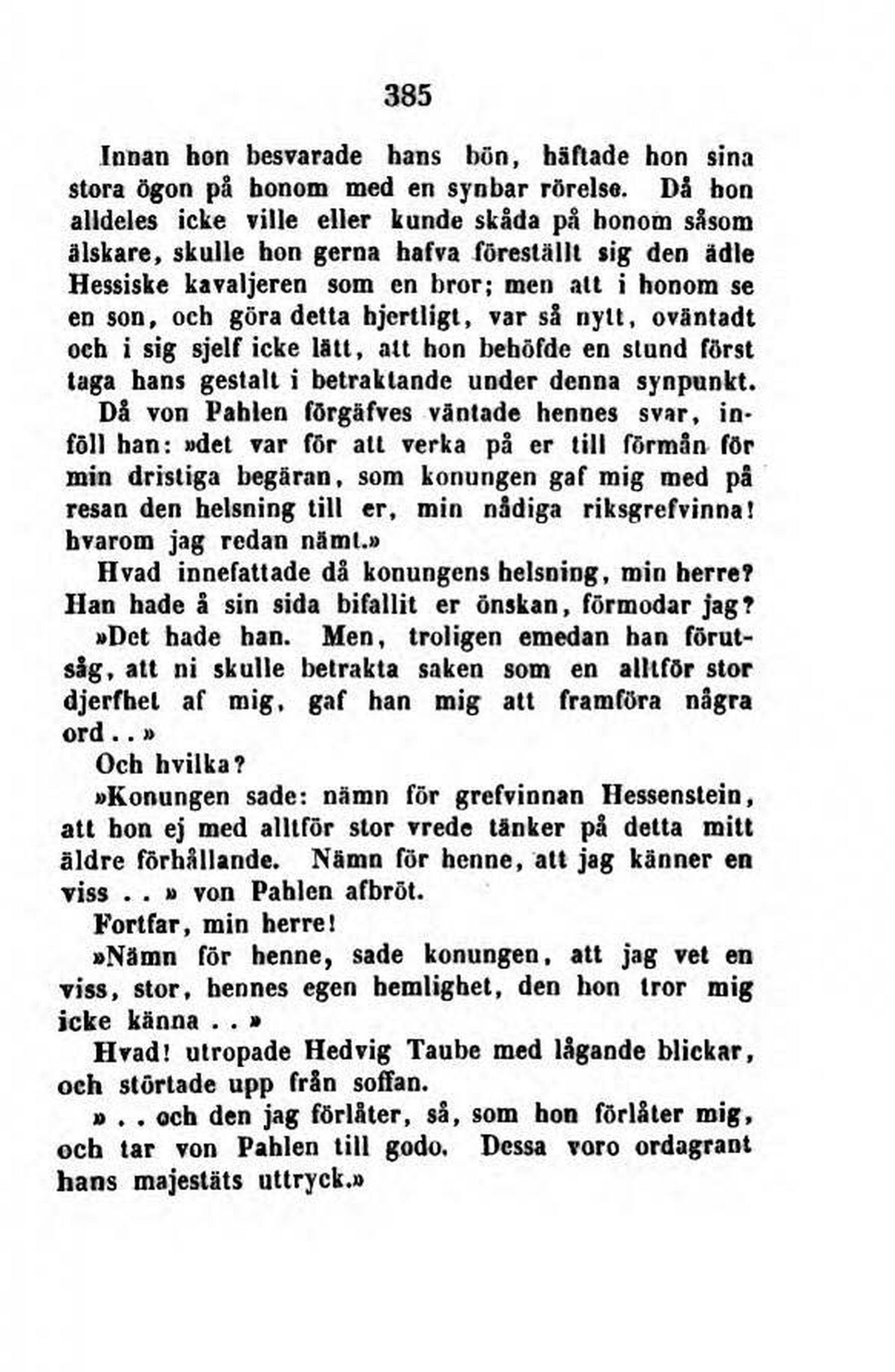 »Konungen sade: nämn för grefvinnan Hessenstein,