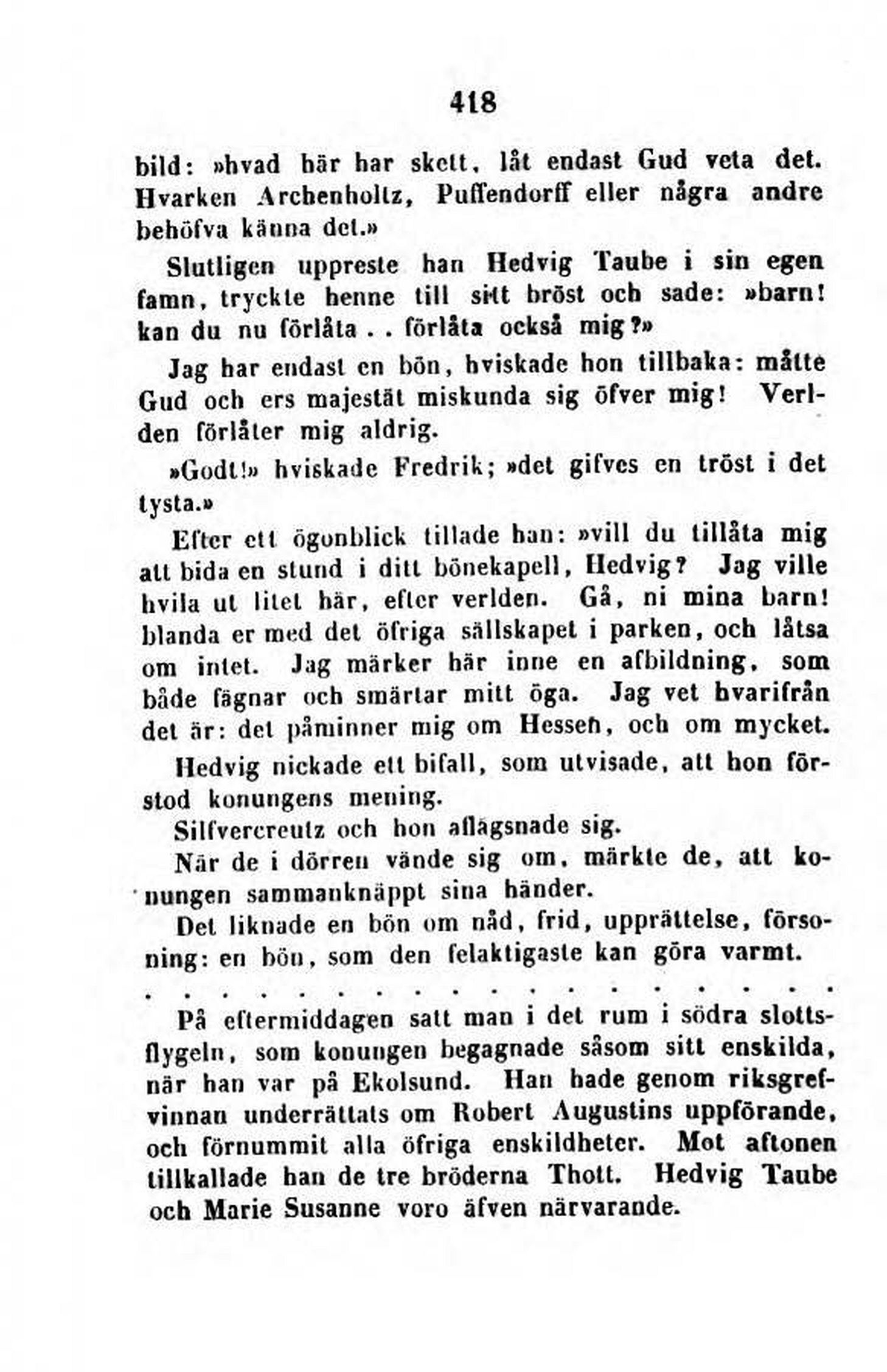 »Godt!» hviskade Fredrik; »del gifves en tröst i det