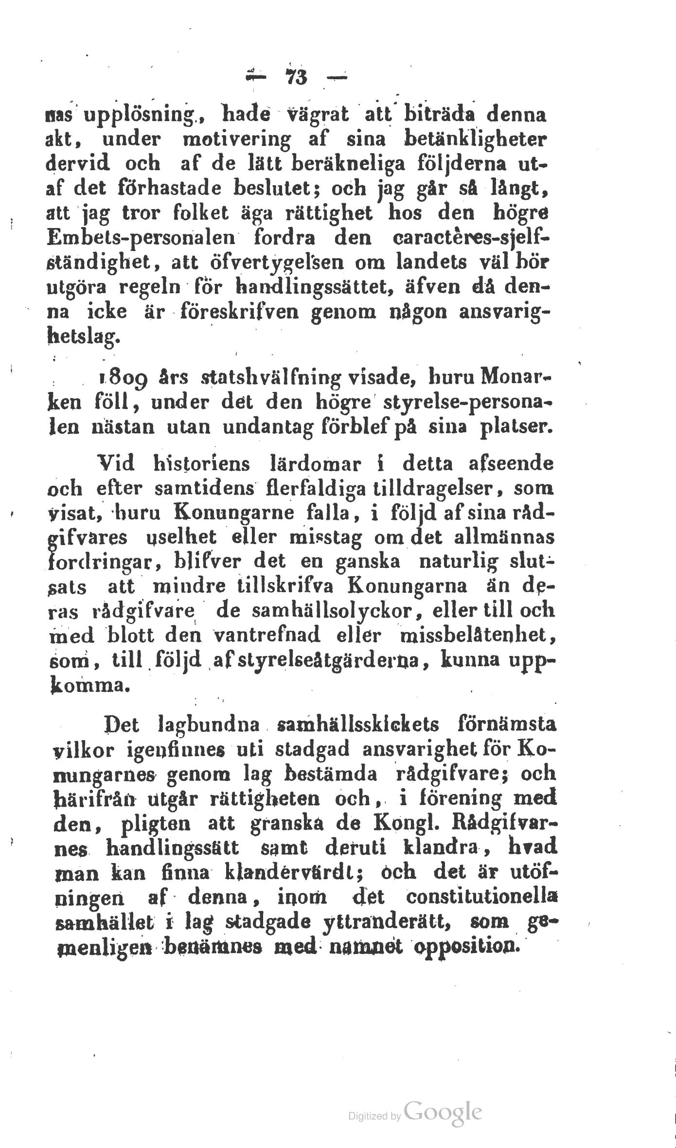 caractères-sjelf-ständighet, att öfvertygelsen om landets väl bör