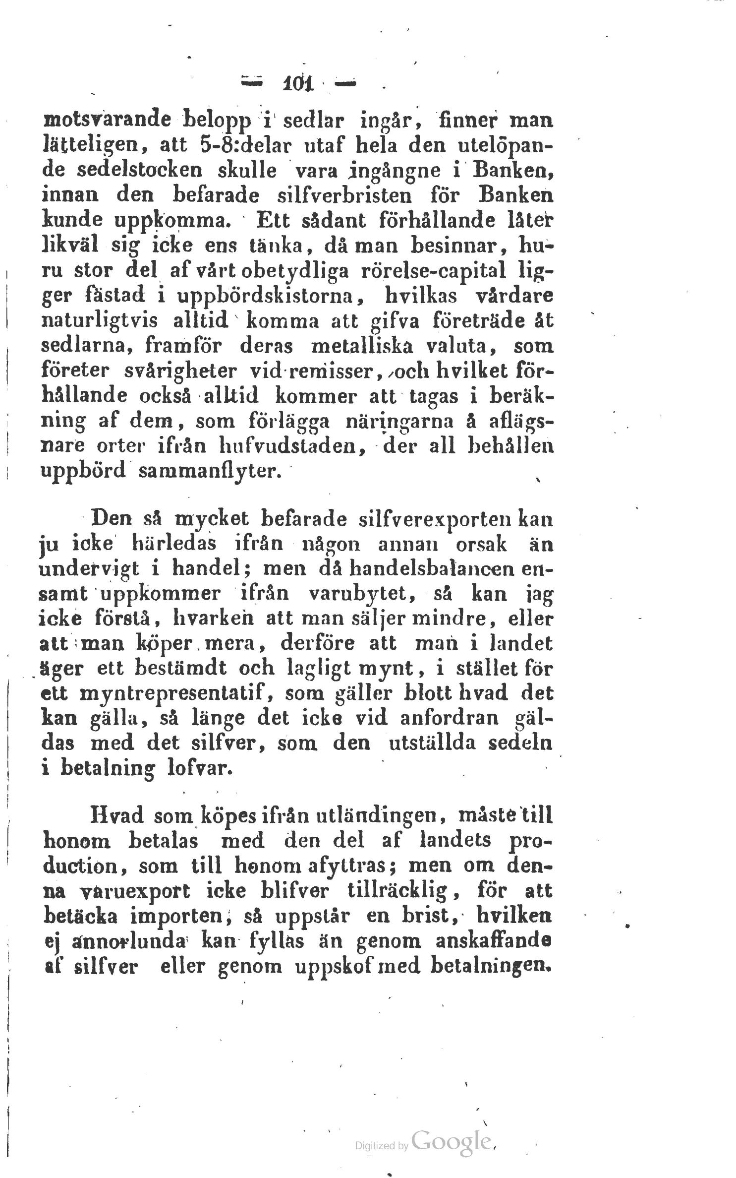 aflägsnare orter ifrån hufvudstaden, der all behållen