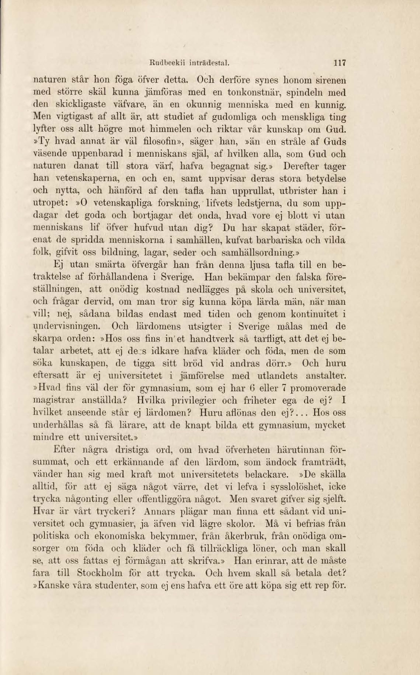 »Ty hvad annat är väl filosofin», säger han, »än en stråle af Guds
