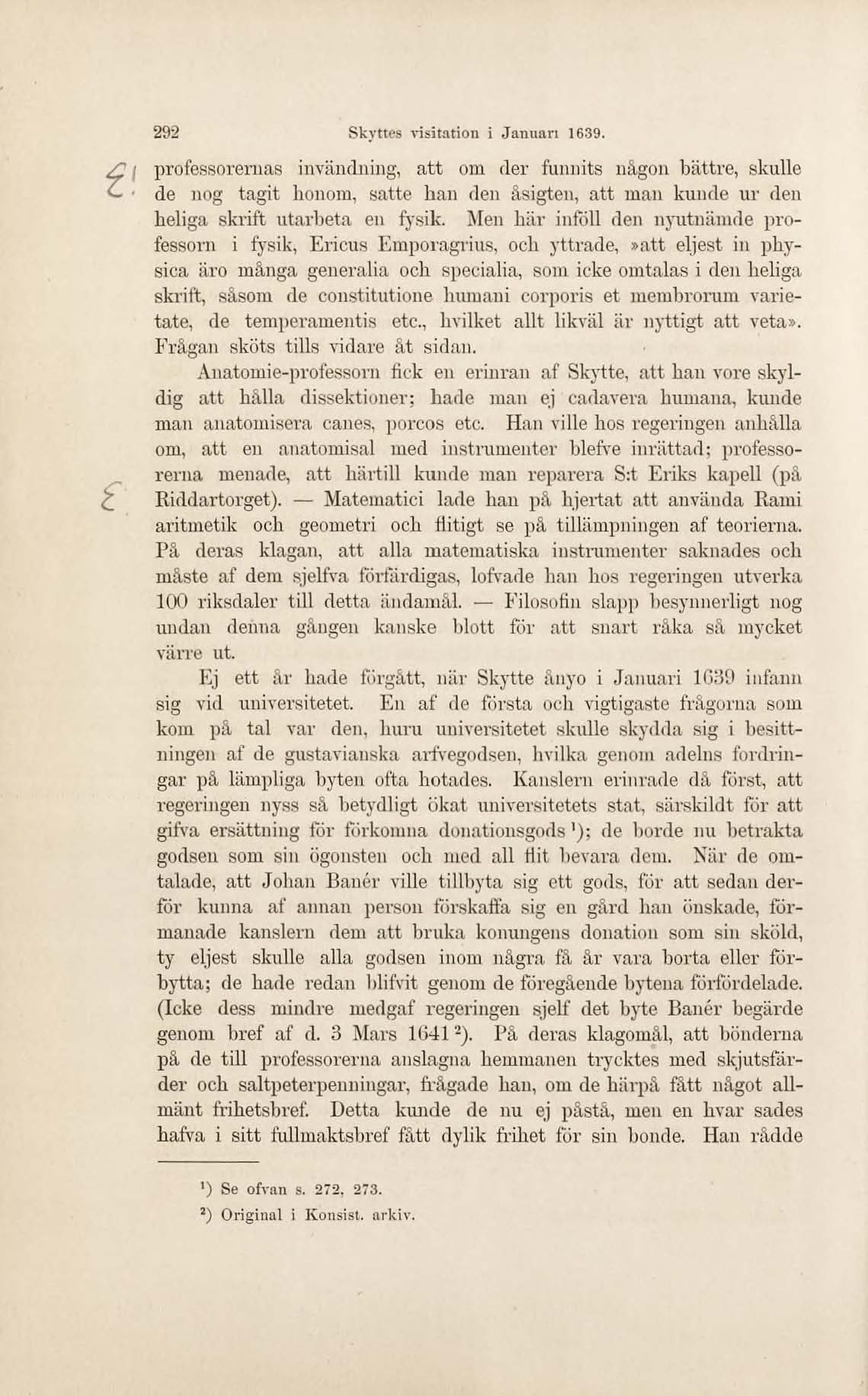 Full resolution (JPEG) - On this page / på denna sida - 6. Gustaf Adolfs bortgång. Förmyndarregeringen och universitetet intill 1637. Universitetets representation på herredagarne. Kommunitetets tillstånd. Dess upphäfvande 1637. Regeringen och universitetet 1639, 1640. Axel Oxenstjernas och Johan Skyttes visitation 1637. Följder af densamma. Universitetets ställning till staden. Johan Skyttes visitationer 1638, 1639. Wallii angrepp på Schomerus. Spänningen mellan ärkebiskop Laurentius och universitetet. Johan Skyttes visitationer 1640—1644 och död 1645