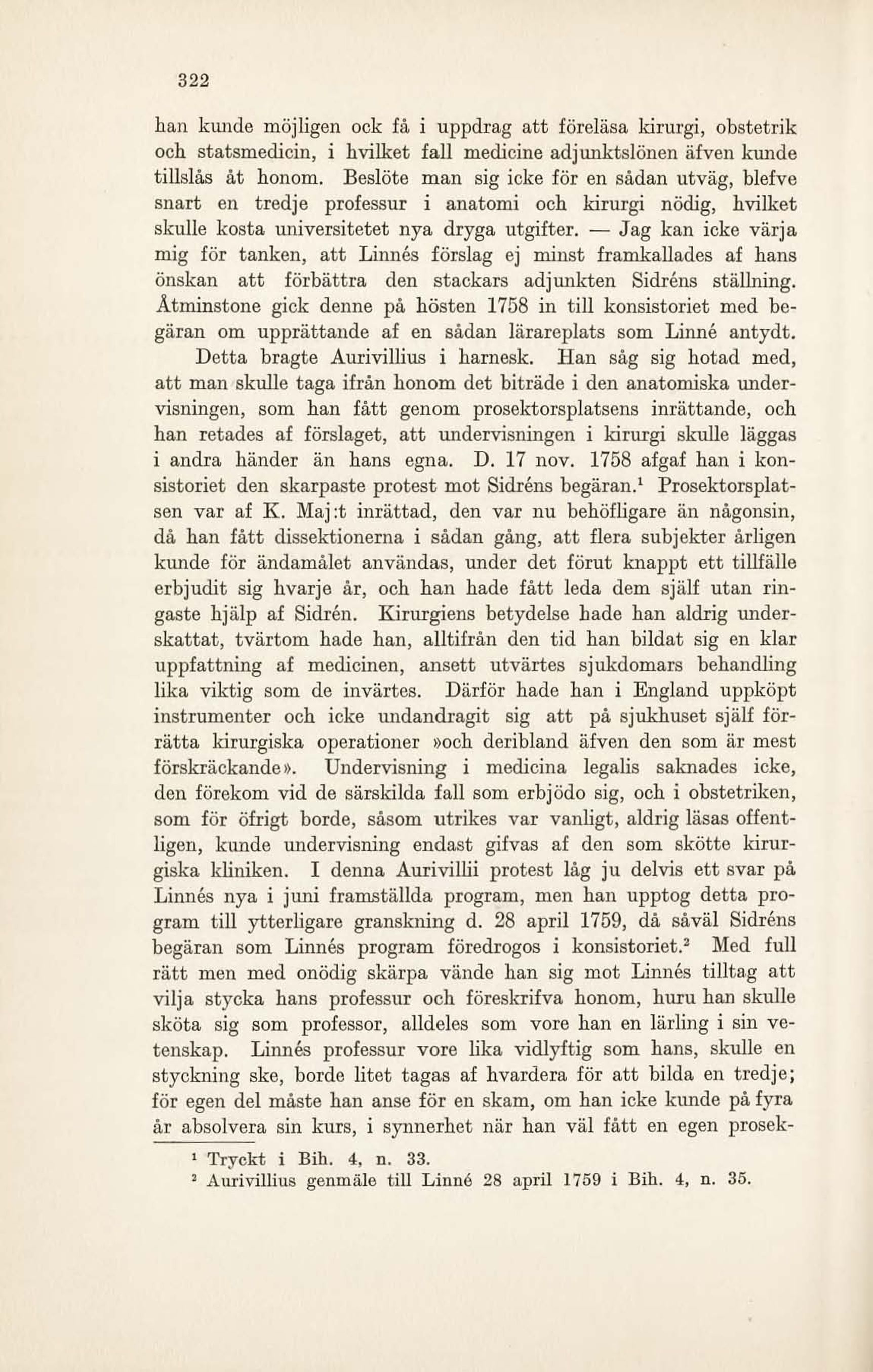 2 Aurivillius genmäle till Linné 28 april 1759 i Bih. 4, n. 35.