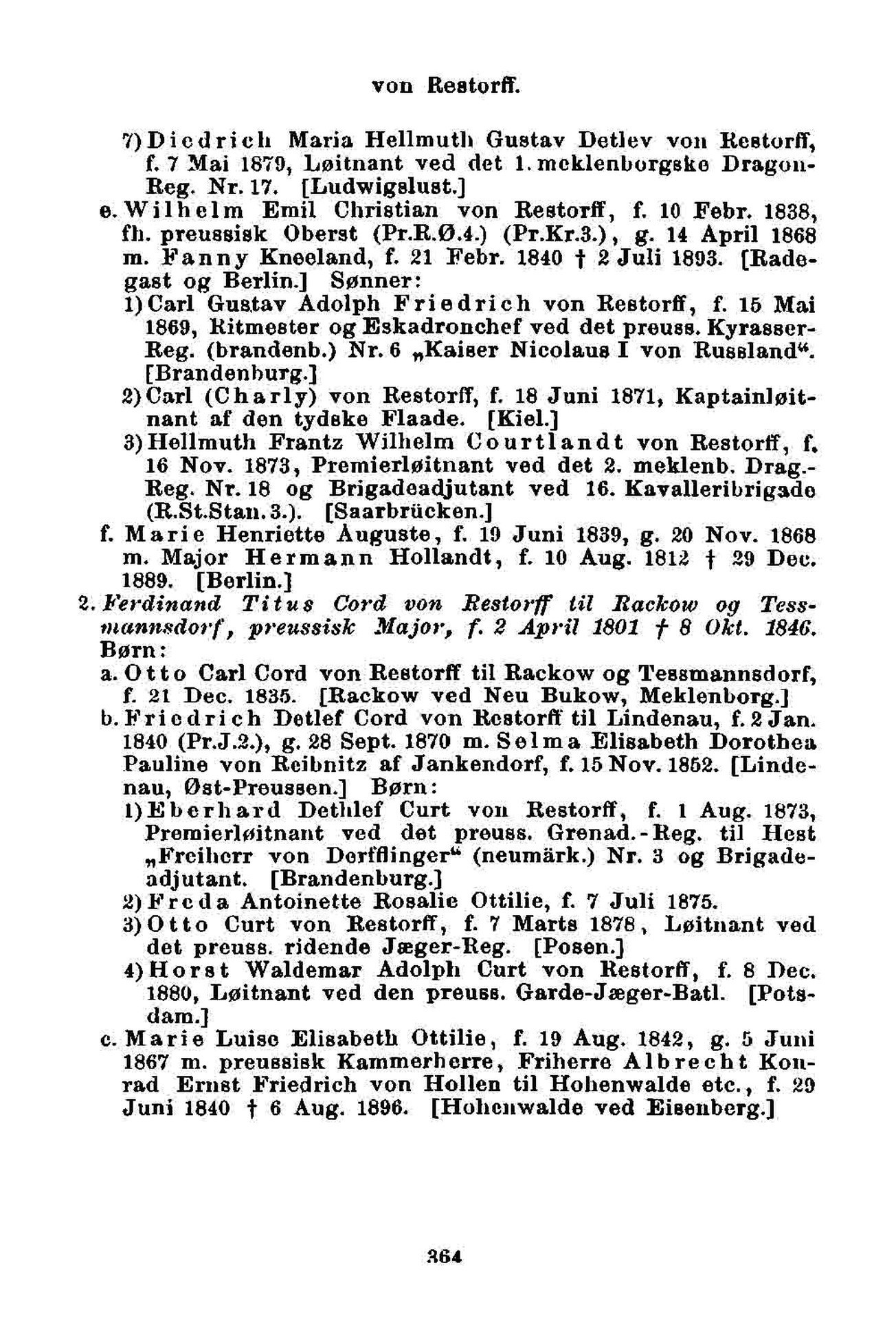 Wilhelm Emil Christian von Restorff, f. 10 Febr. 1838,