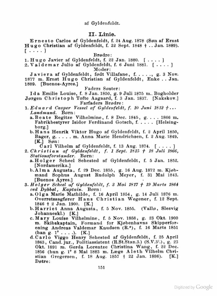 2. Valdemar Julio af Gyldenfeldt, f. 6 Juni 1881. [....]