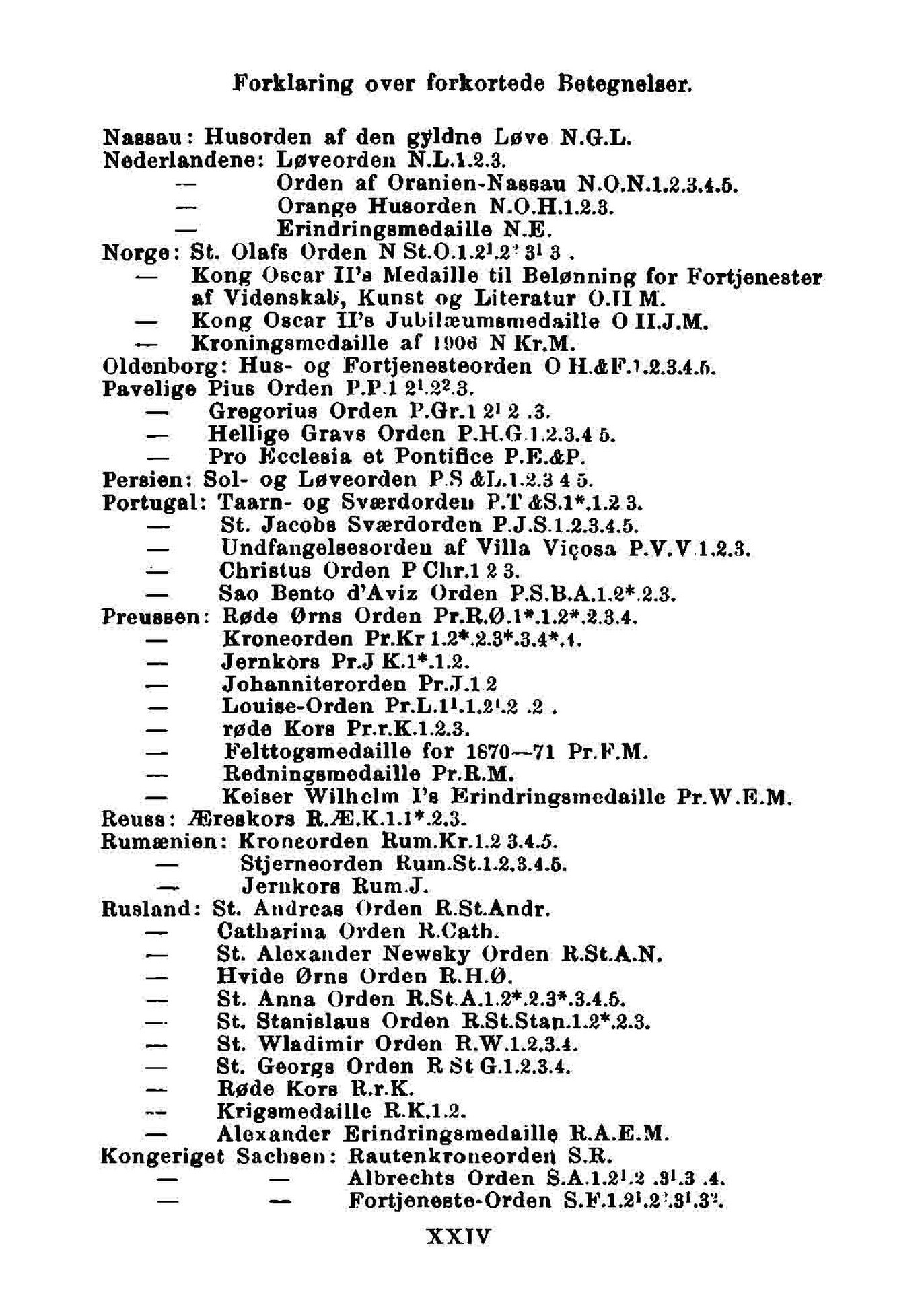 Forklaring over forkortede Betegnelser.