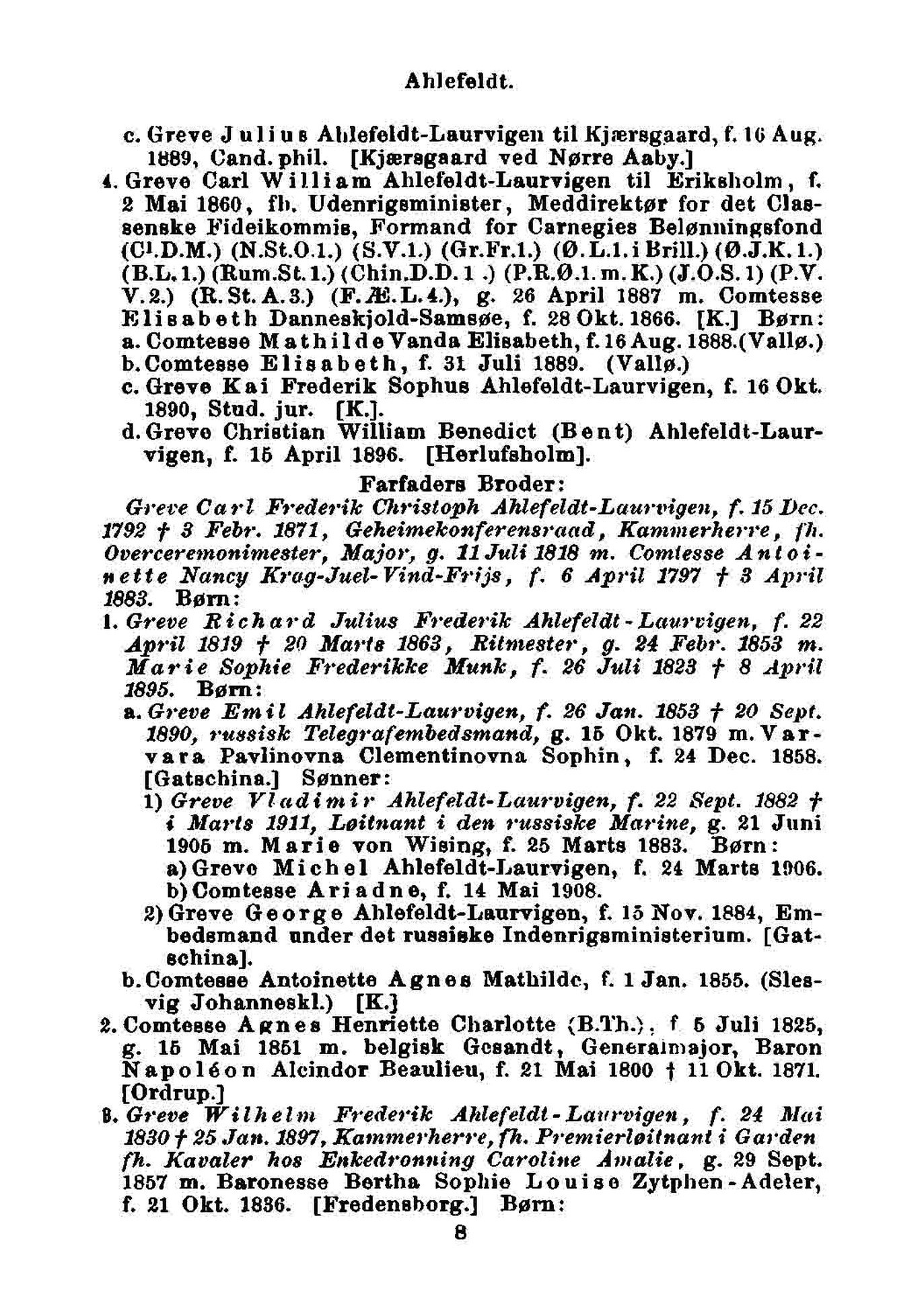B. Greve Wilhelm Frederik Ahlefeldt - Laurvigen, f. 24 Mai