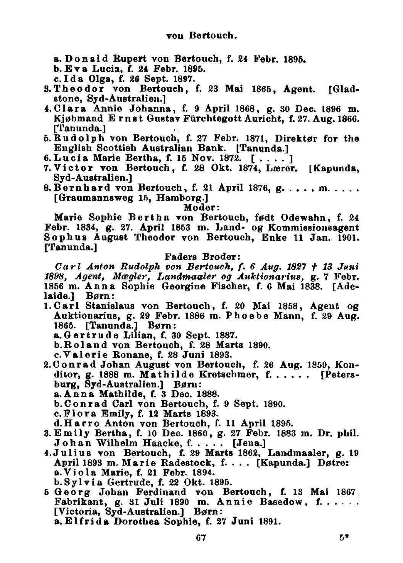 5 Georg Johan Feørdinand von Bertouch, f. 13 Mai 1867.