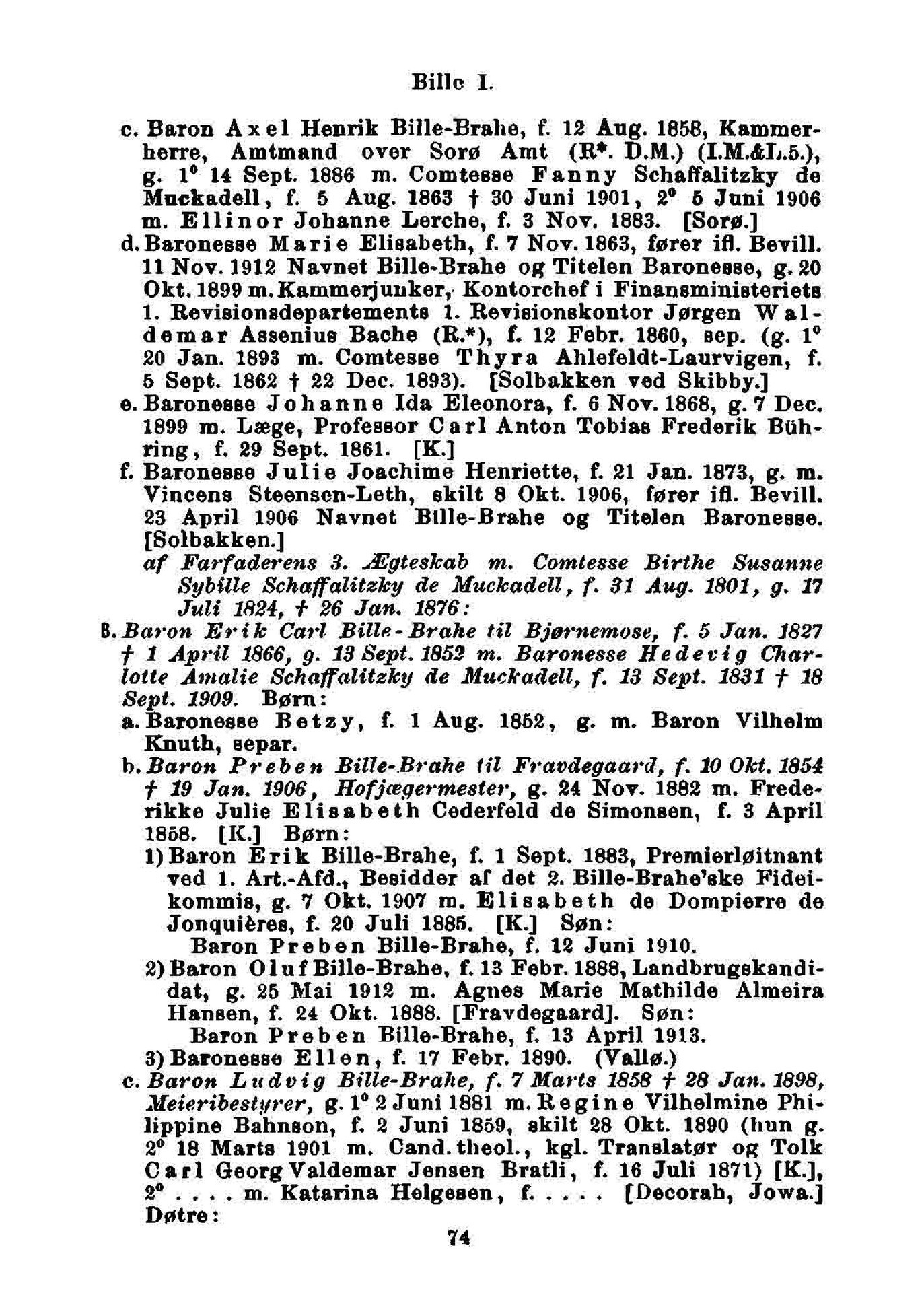 1)Baron Erik Bille-Brahe, f. 1 Sept. 1883, Premierløitnant