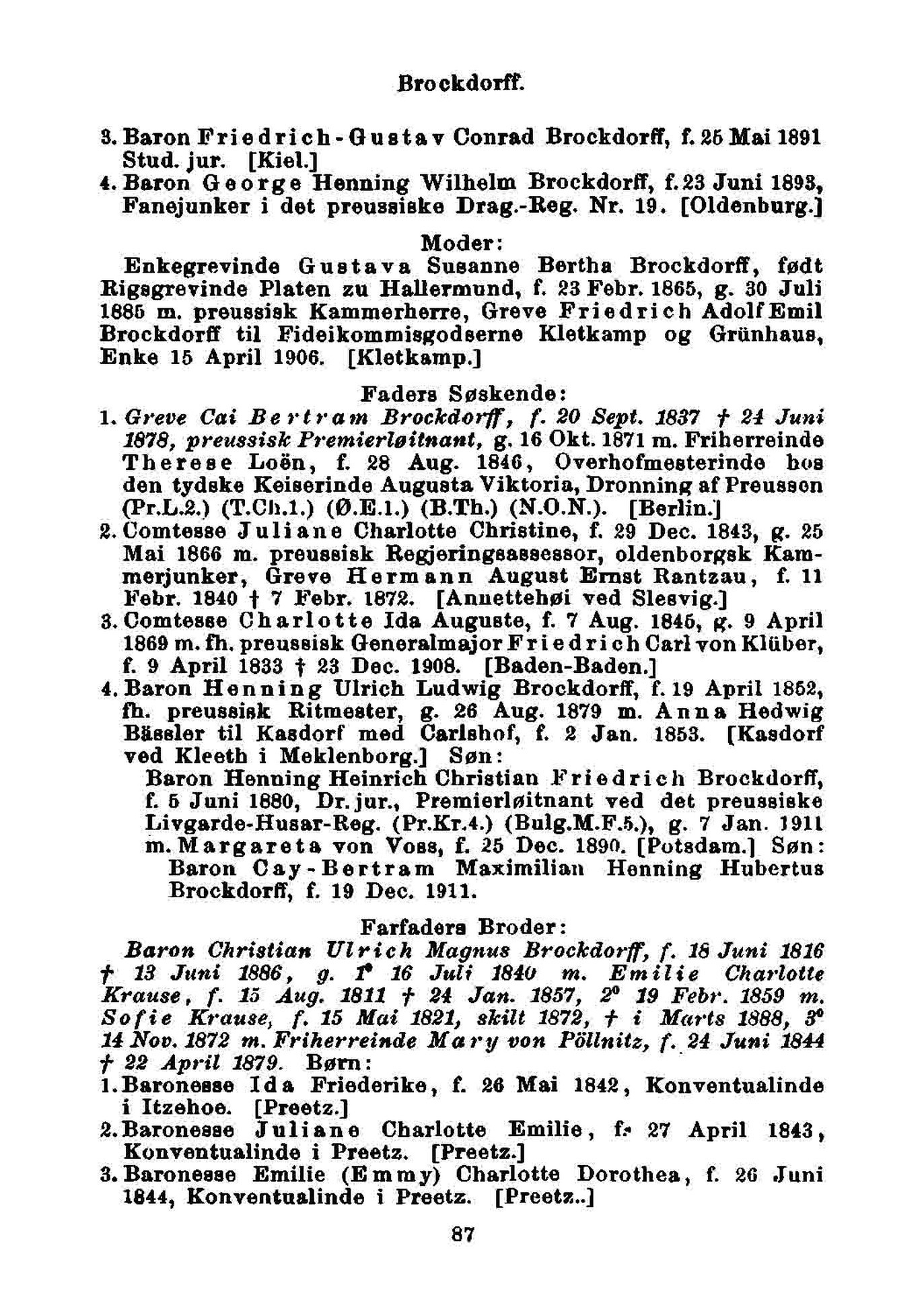 3. Baron Friedrich-QGustav Conrad Brockdorff, f. 25 Mai 1891