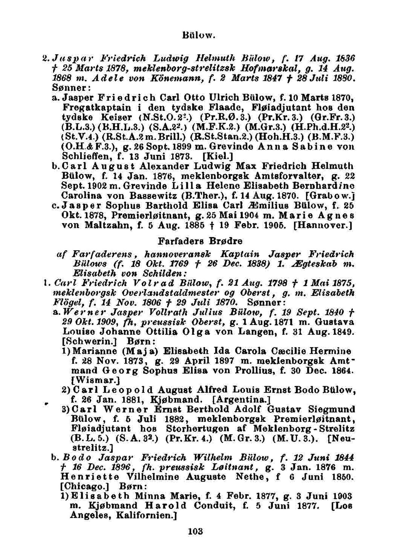 b. Bodo Jaspar Friedrich Wilhelm Bilow, f. 12 Juni 1844