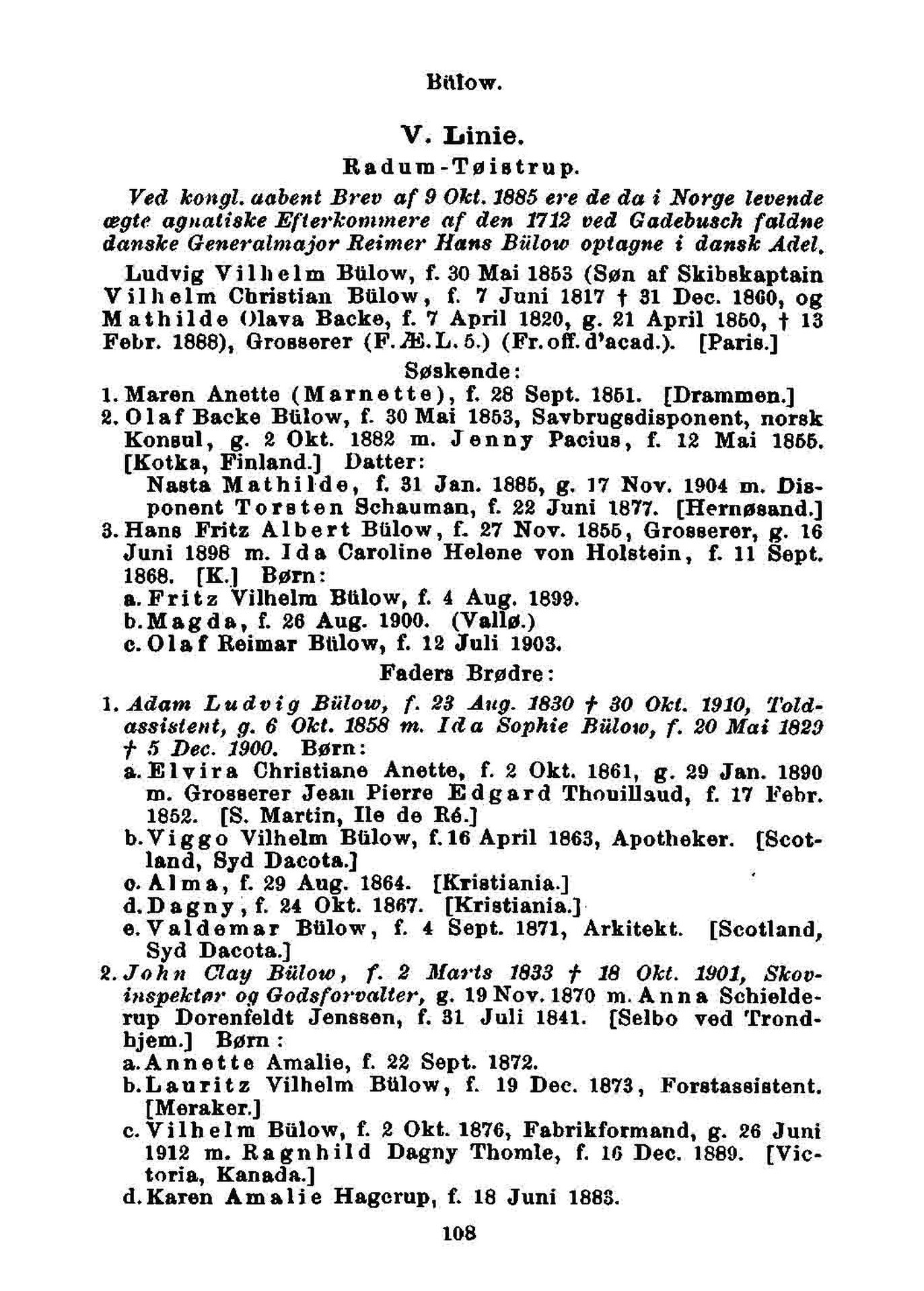 Ludvig Vilhelm Bulow, f. 30 Mai 1853 (Søn af Skibskaptain