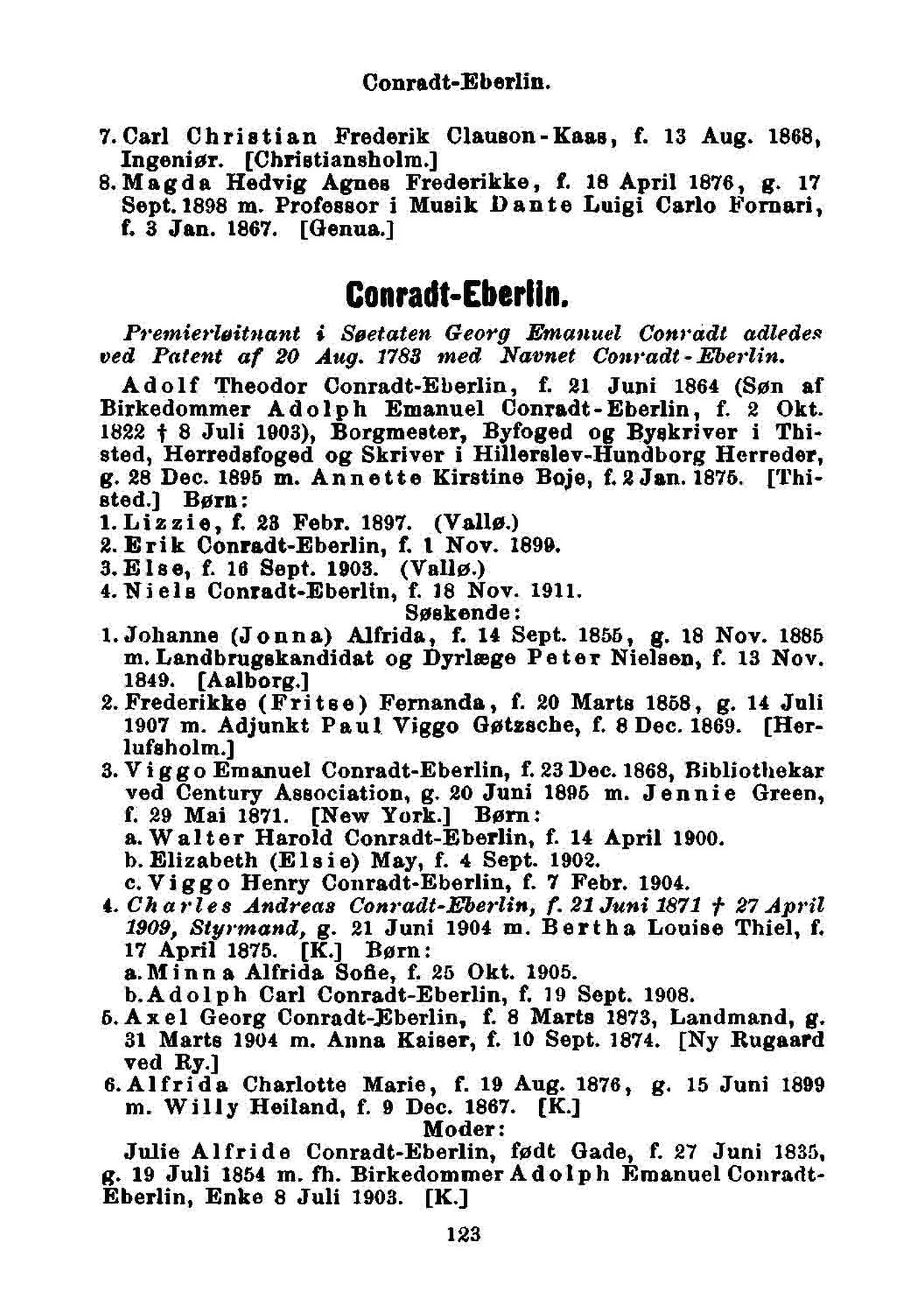 Adolf Theodor Conradt-Eberlin, f. 21 Juni 1864 (Søn af