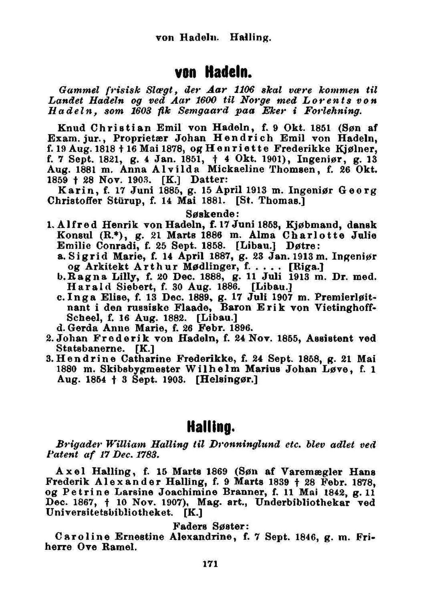 1. Alfred Henrik von Hadeln, f. 17 Juni 1858, Kjøbmand, dansk