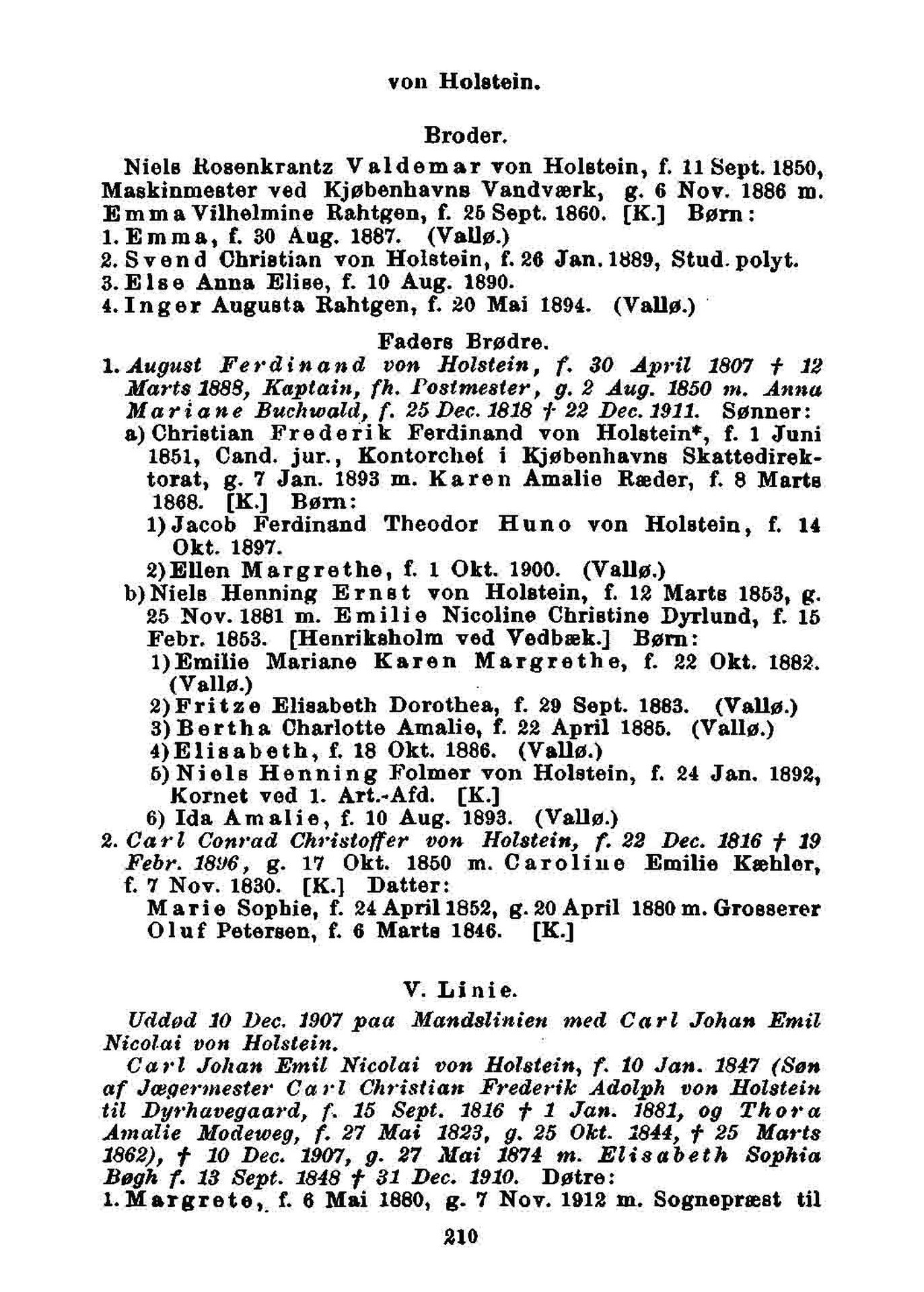 Niels Rosenkrantz Valdemar von Holstein, f. 11 Sept. 1850,