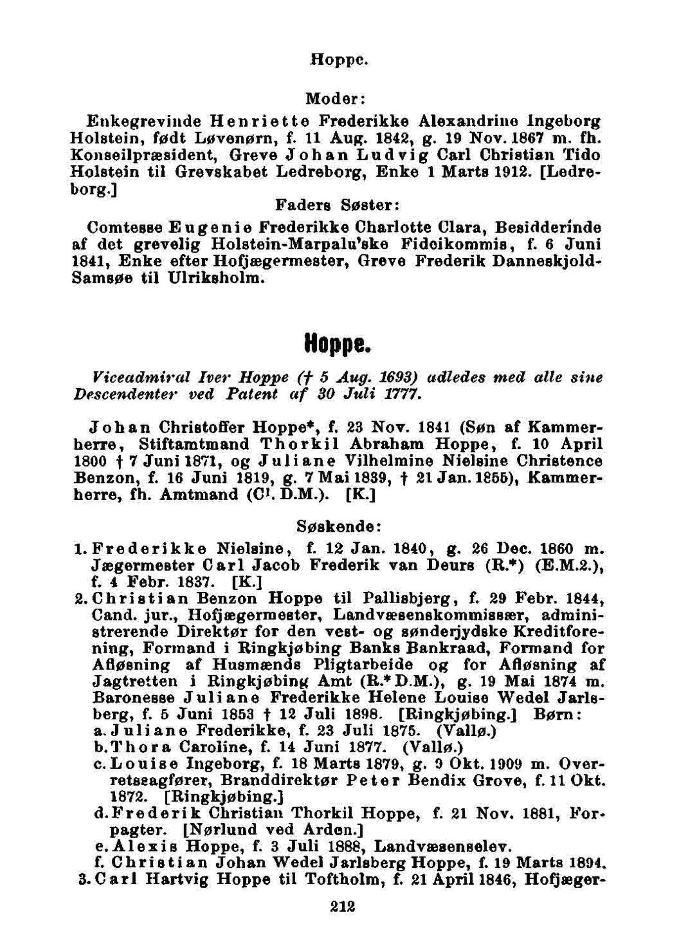 2.Christian Benzon Hoppe til Pallisbjerg, f. 29 Febr. 1844,