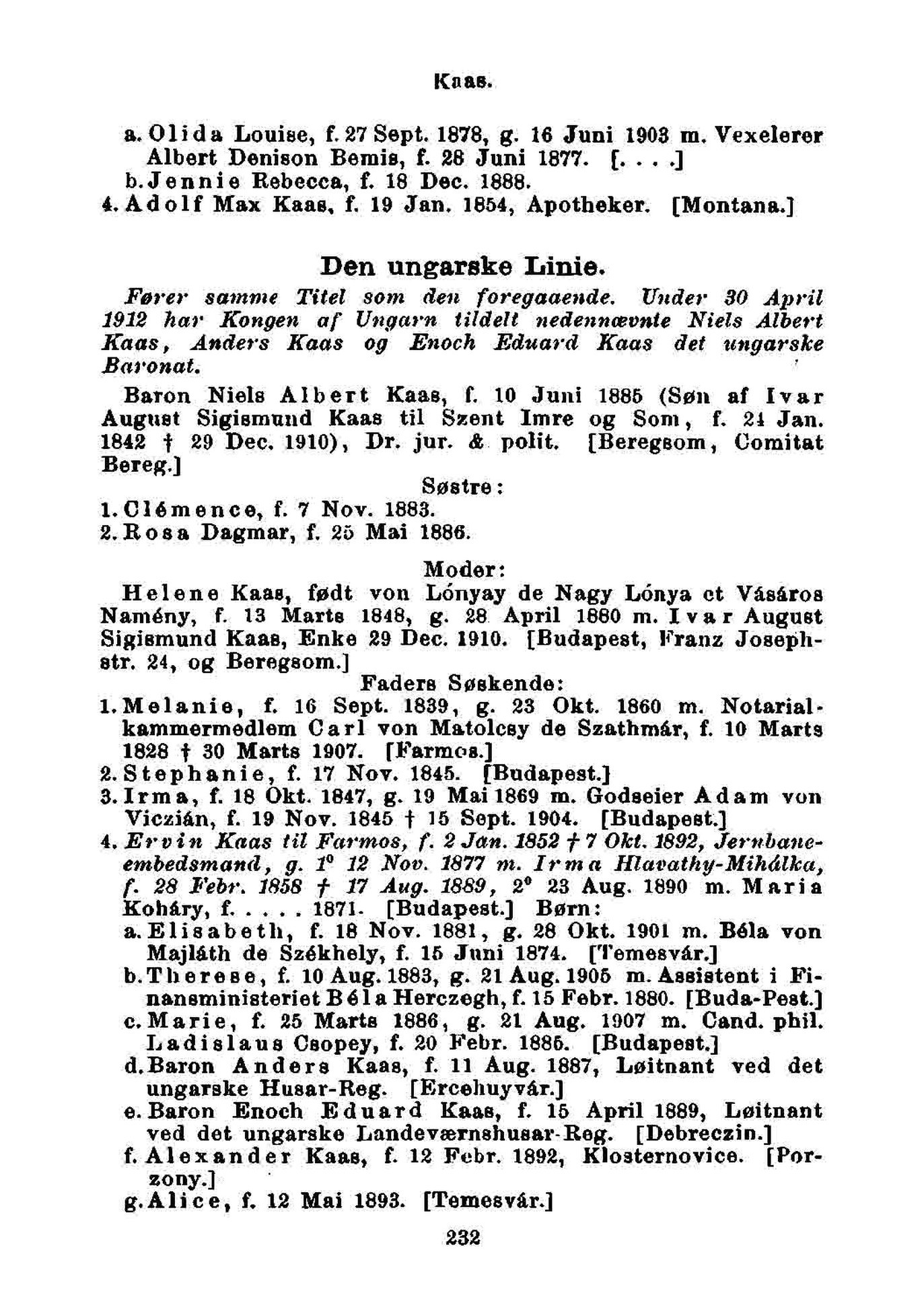 4.Adolf Max Kaas, f. 19 Jan, 1854, Apotheker. [Montana.]