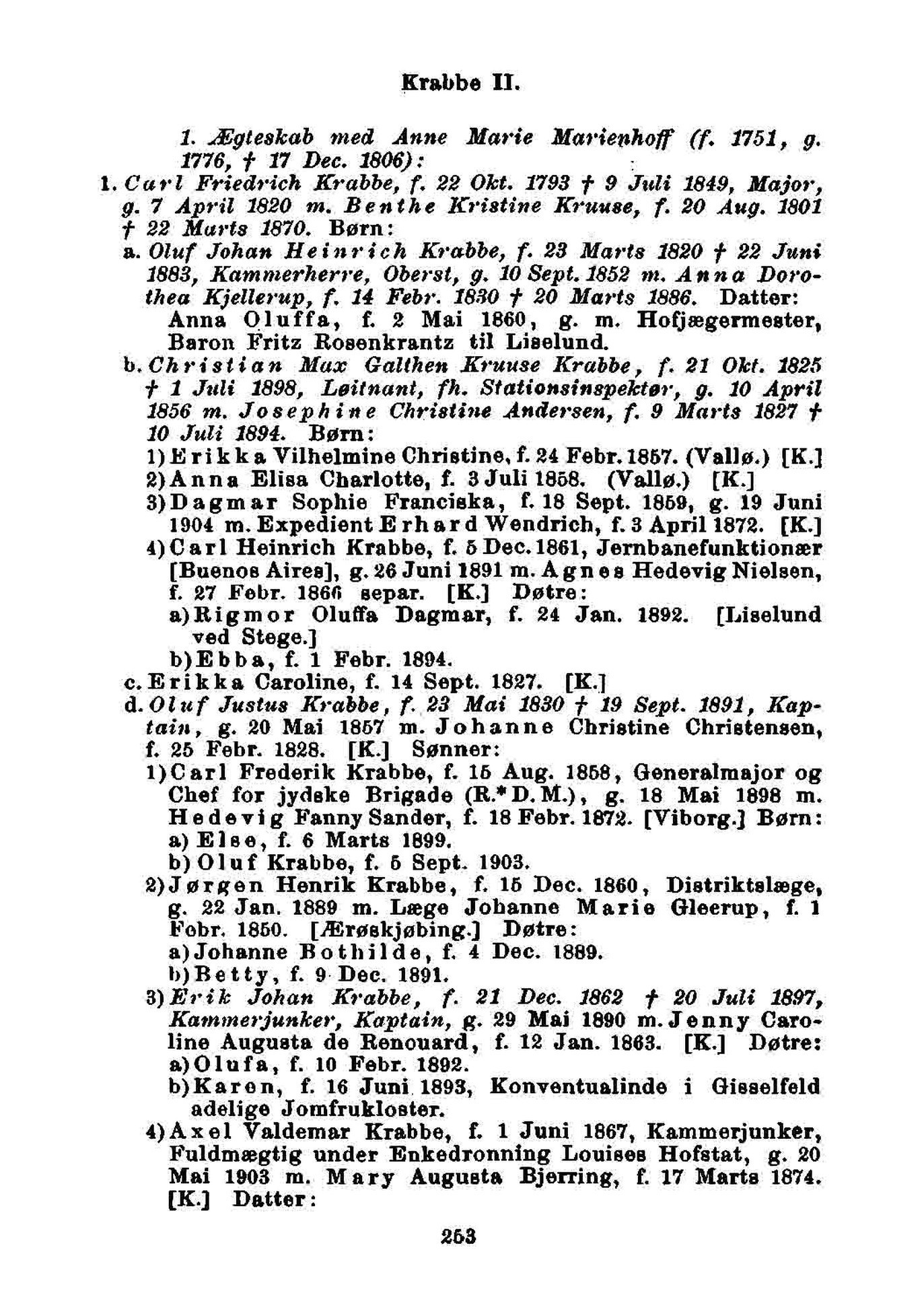 1)Carl Frederik Krabbe, f. 15 Aug. 1858, Generalmajor og