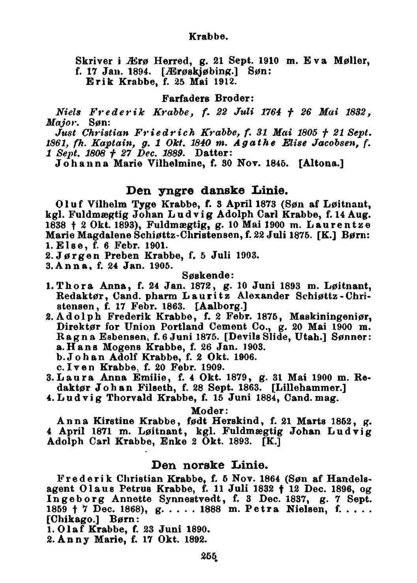 Oluf Vilhelm Tyge Krabbe, f. 3 April 1873 (Søn af Løitnant,