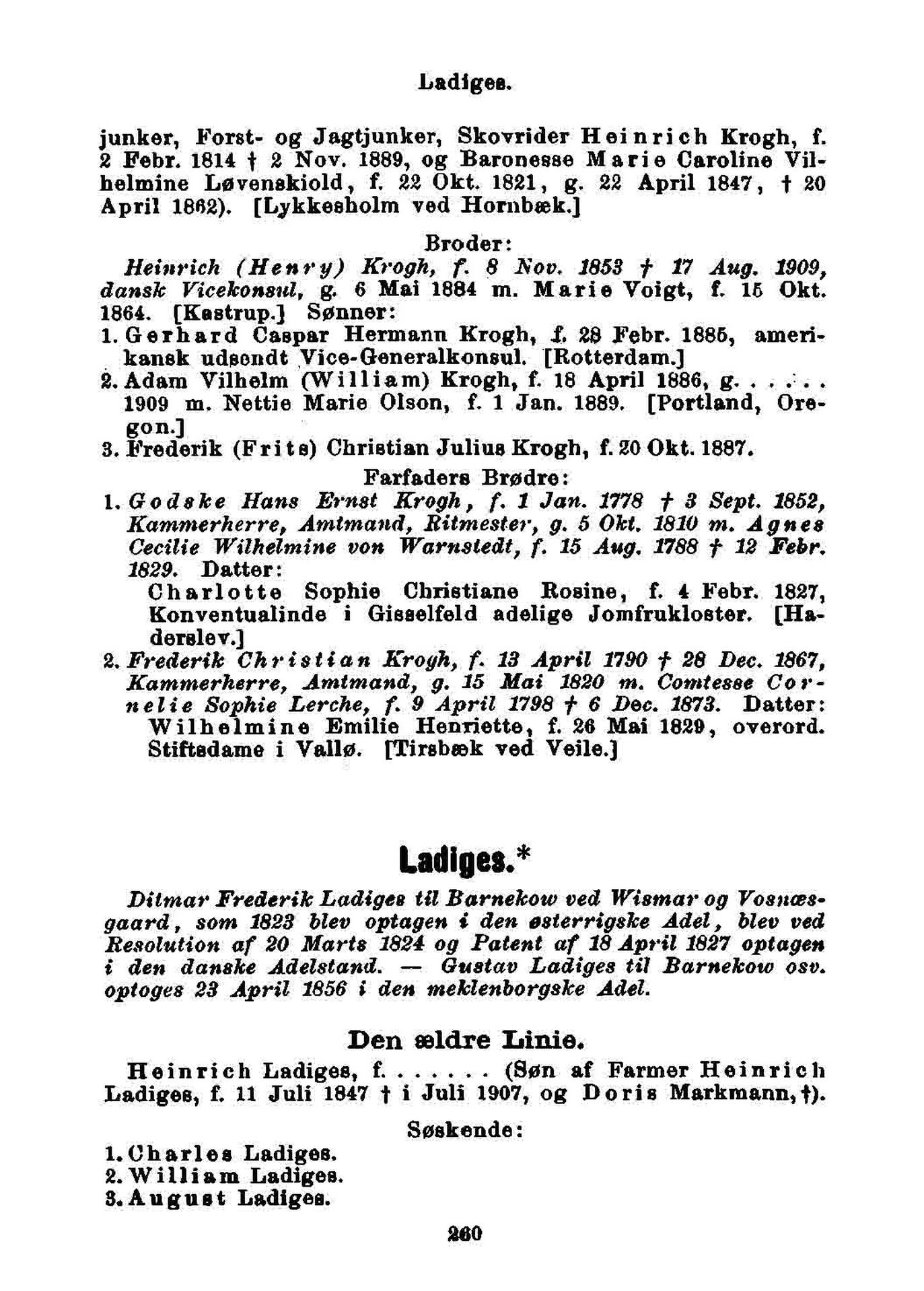 i den danske Adelstand. — Gustav Ladiges til Barnekow osv.