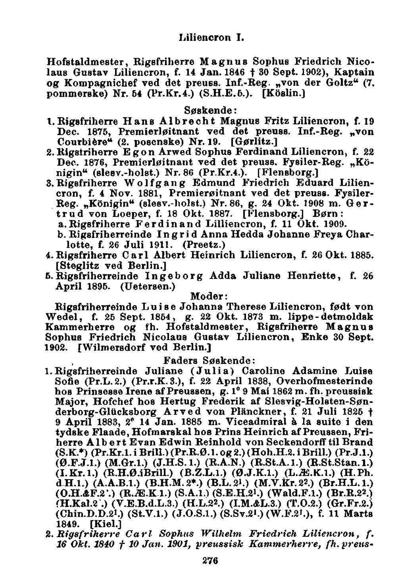 1. Rigsfriherre Hans Albrecht Magnus Fritz Liliencron, f. 19