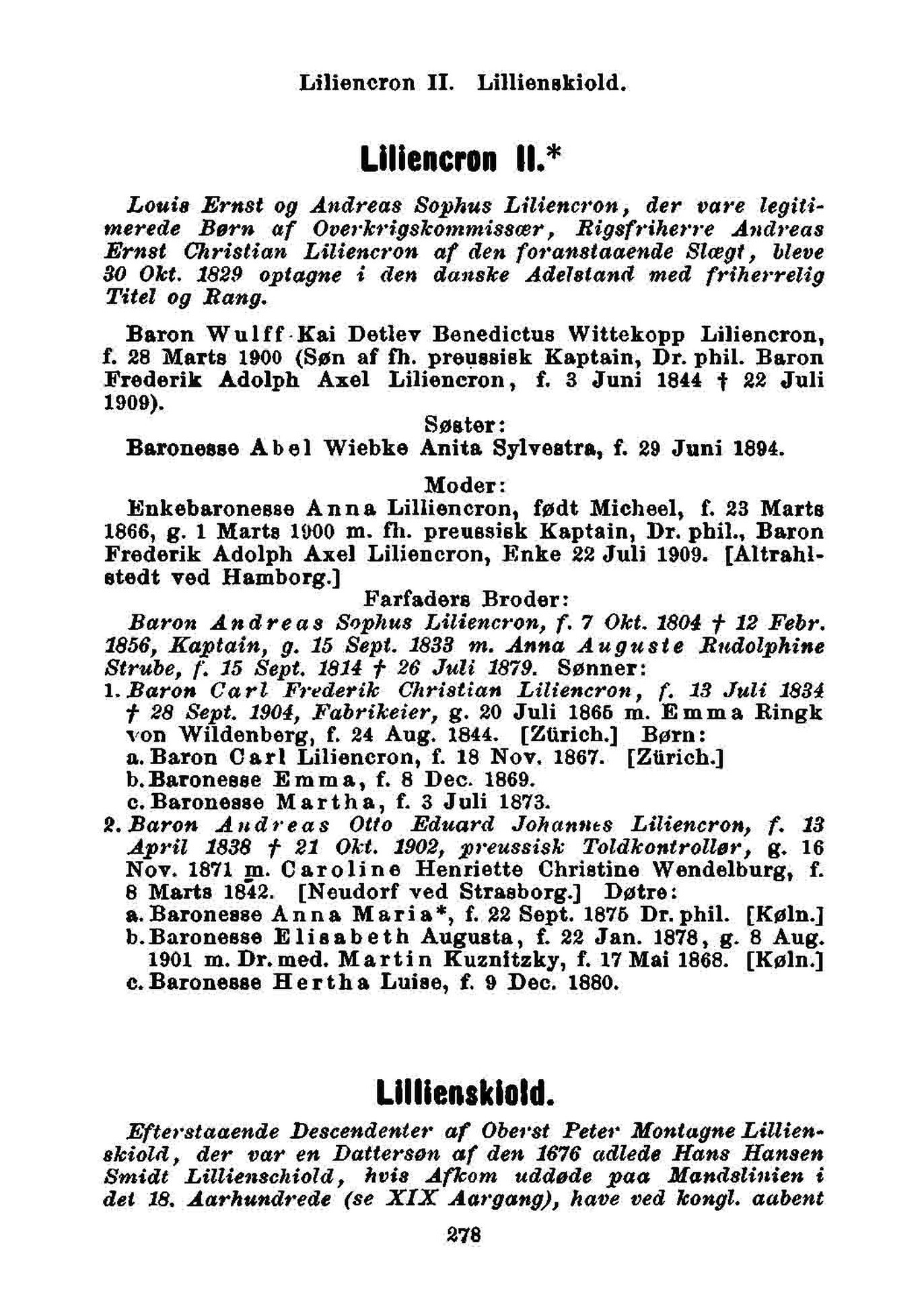 1. Baron Carl Frederik Christian Liliencron, f. 13 Juli 1834