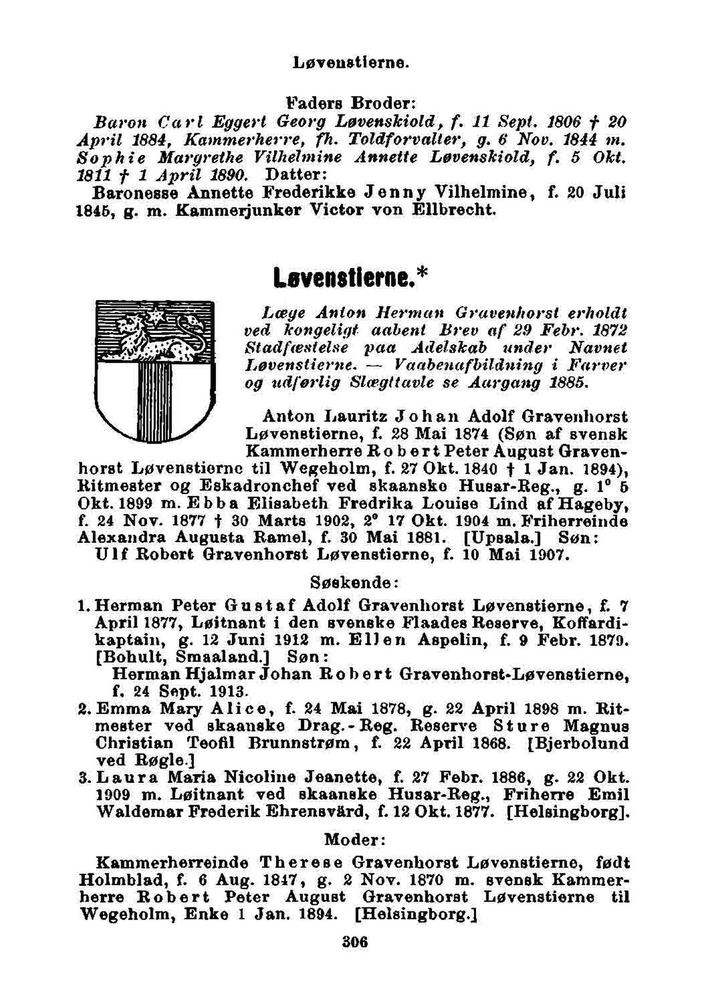 Løvenstierne, f. 28 Mai 1874 (Søn af svensk