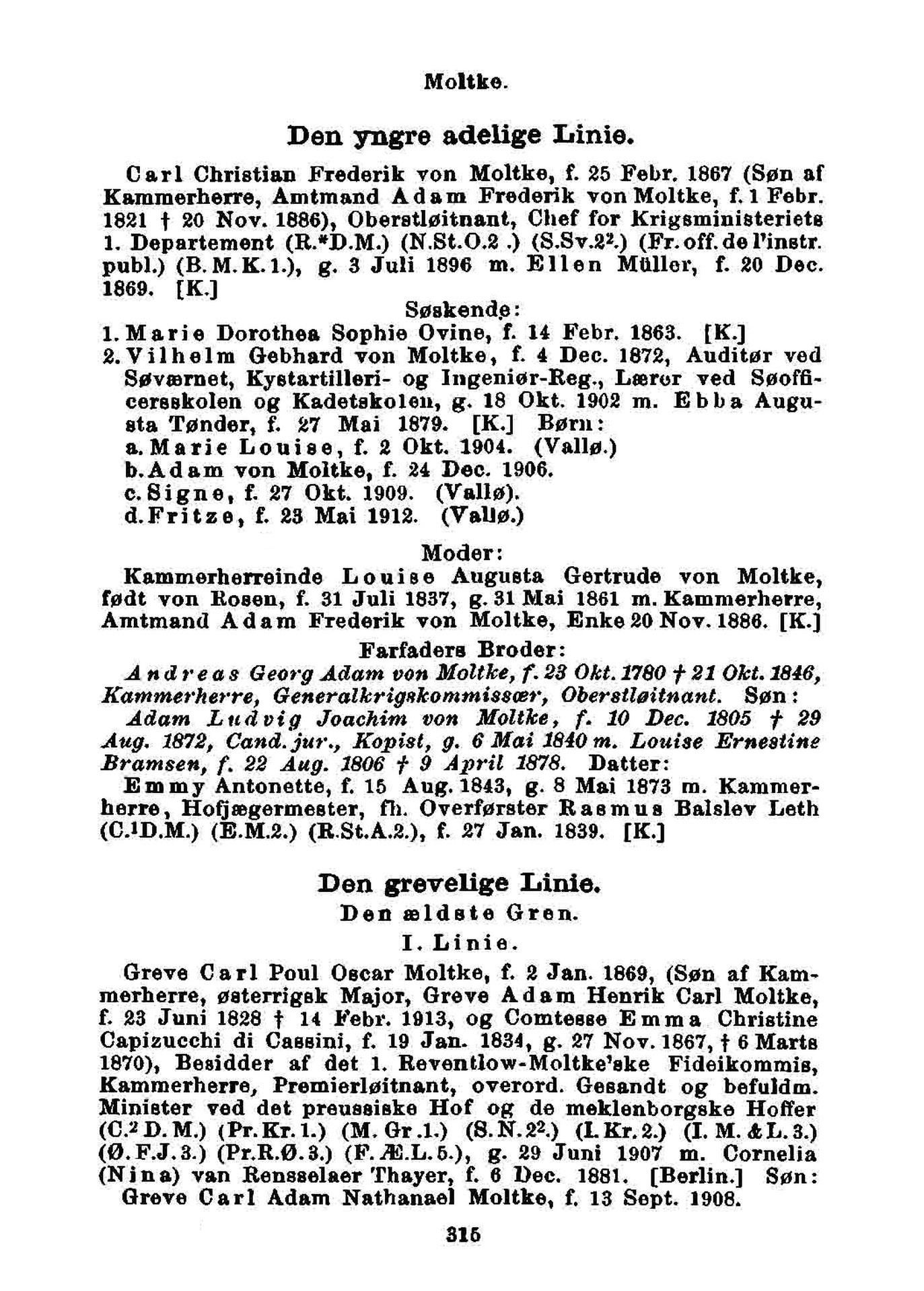 Carl Christian Frederik von Moltke, f. 25 Febr. 1867 (Søn af