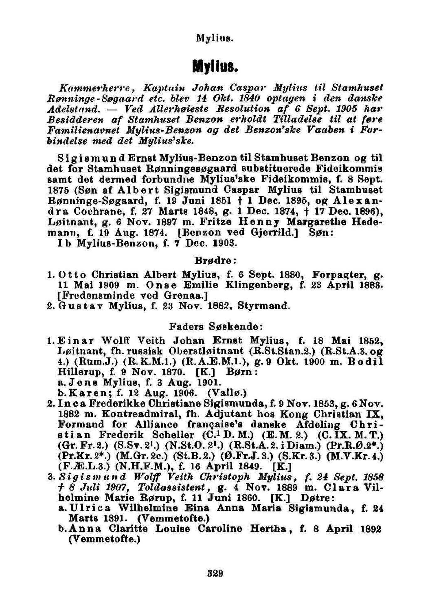3. Sigismund Wolff Veith Christoph Mylius, f. 24 Sept. 1858