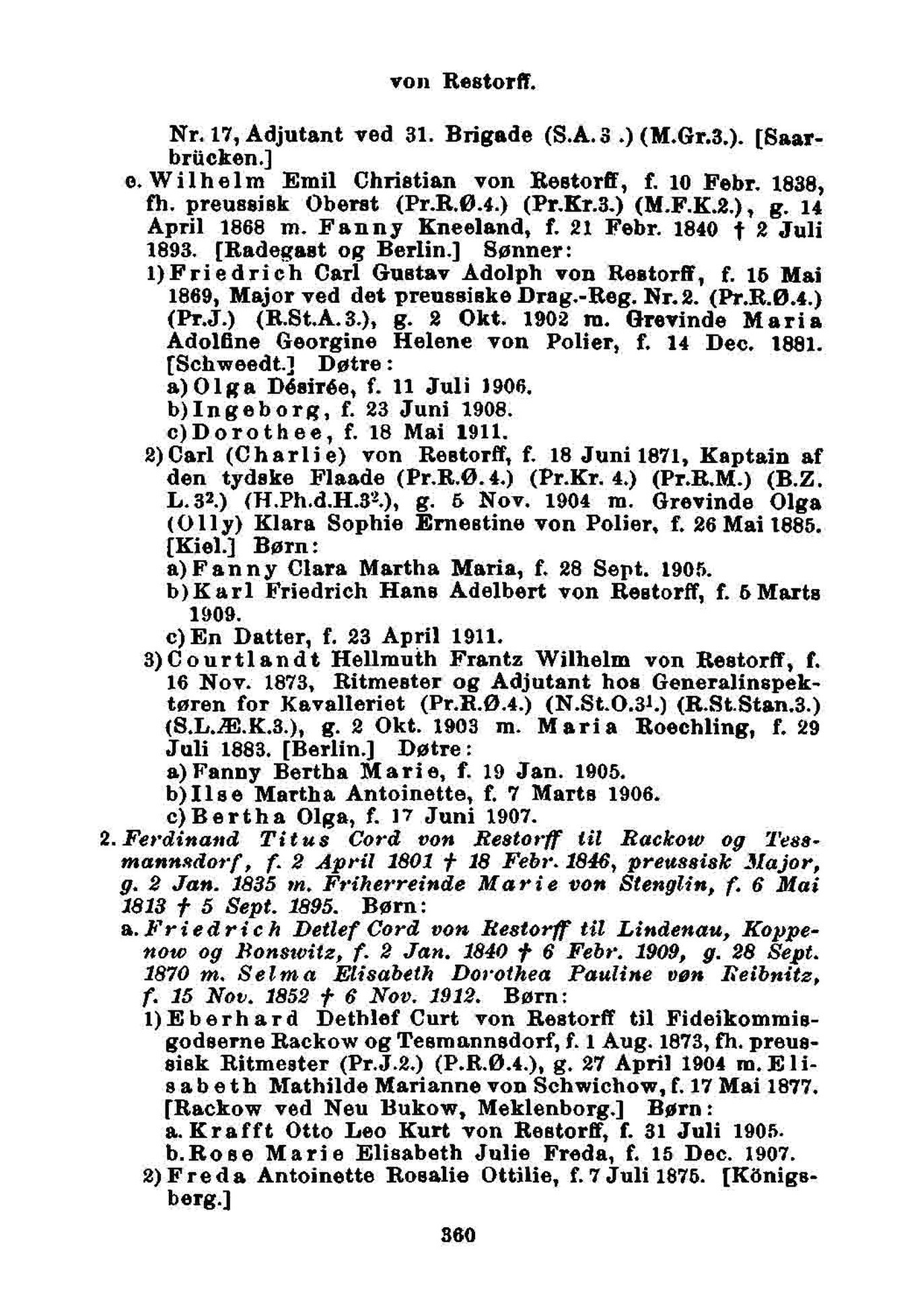 1)Friedrich Carl Gustav Adolph von Restorfø, f. 15 Mai