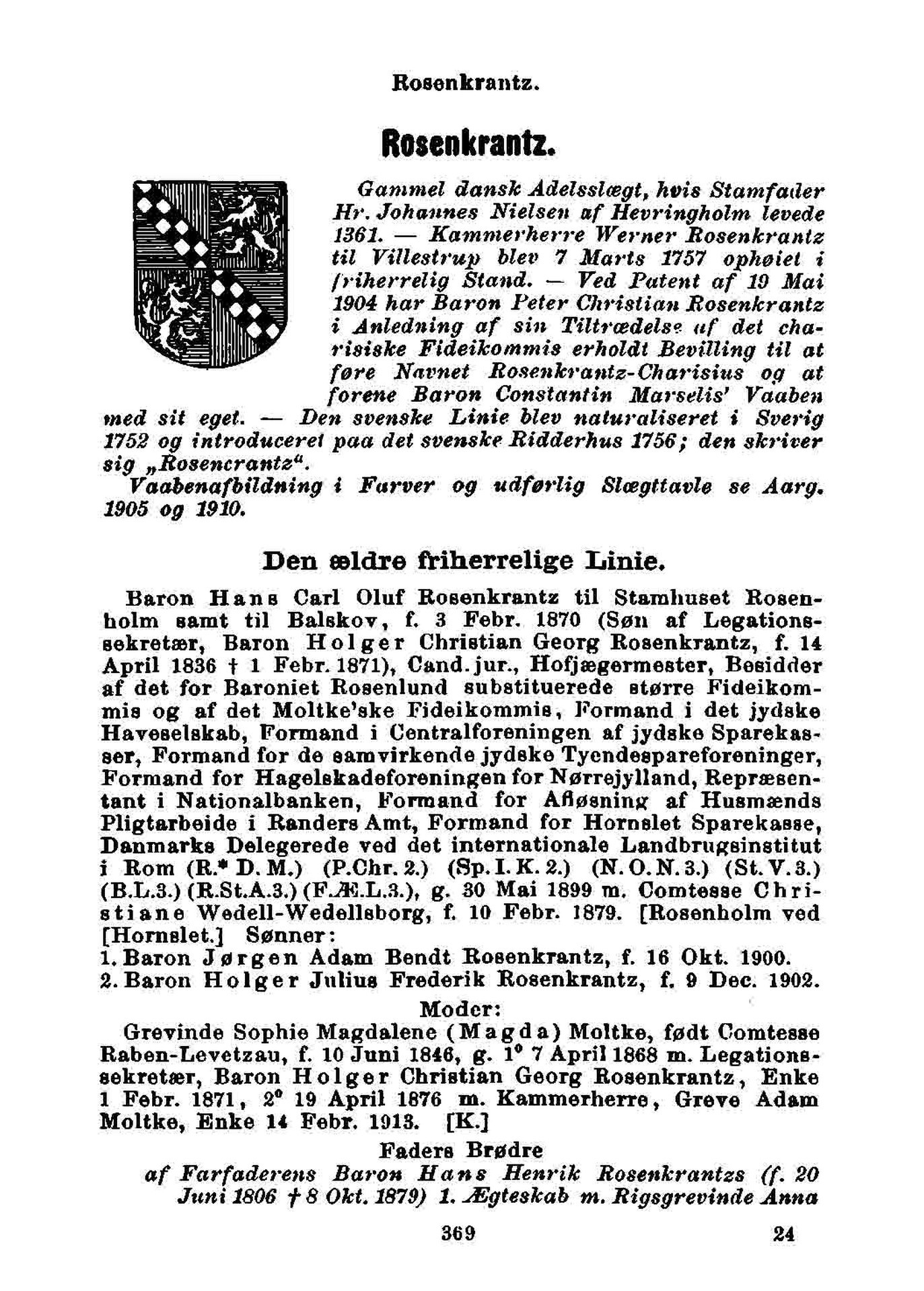 af Farfaderens Baron Hans Henrik Rosenkrantzs (f. 20