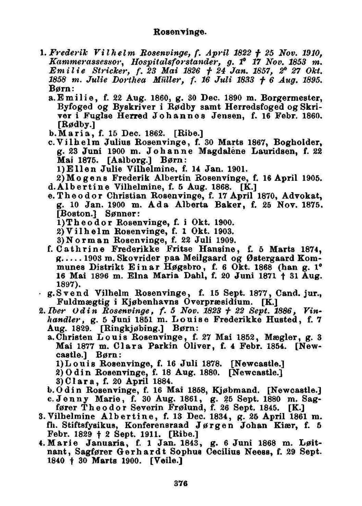 1. Frederik Vilhelm Rosenvinge, f. April 1822 $ 25 Nov. 1910,