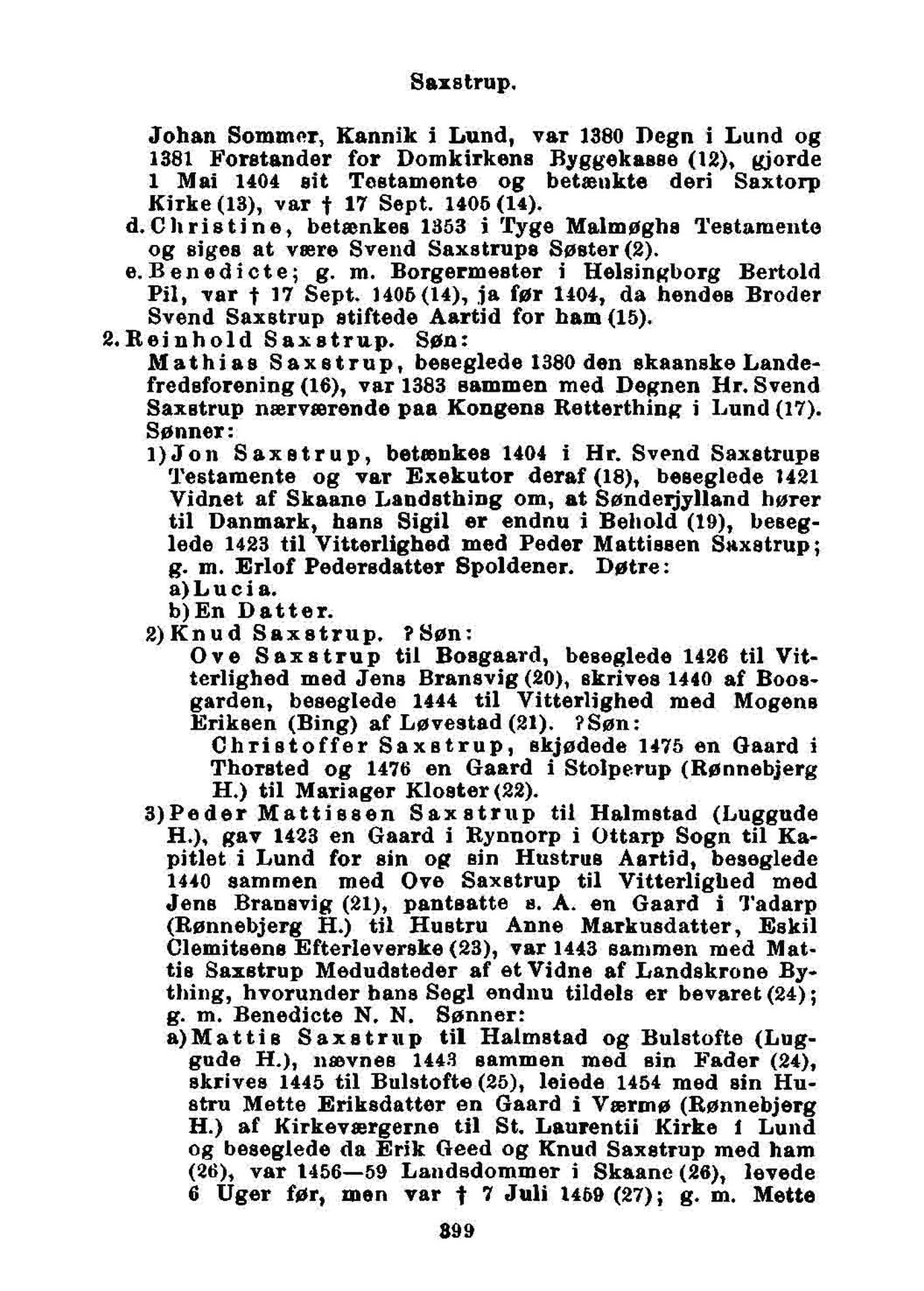 1)Jon Saxstrup, betænkes 1404 i Hr. Svend Saxstrups