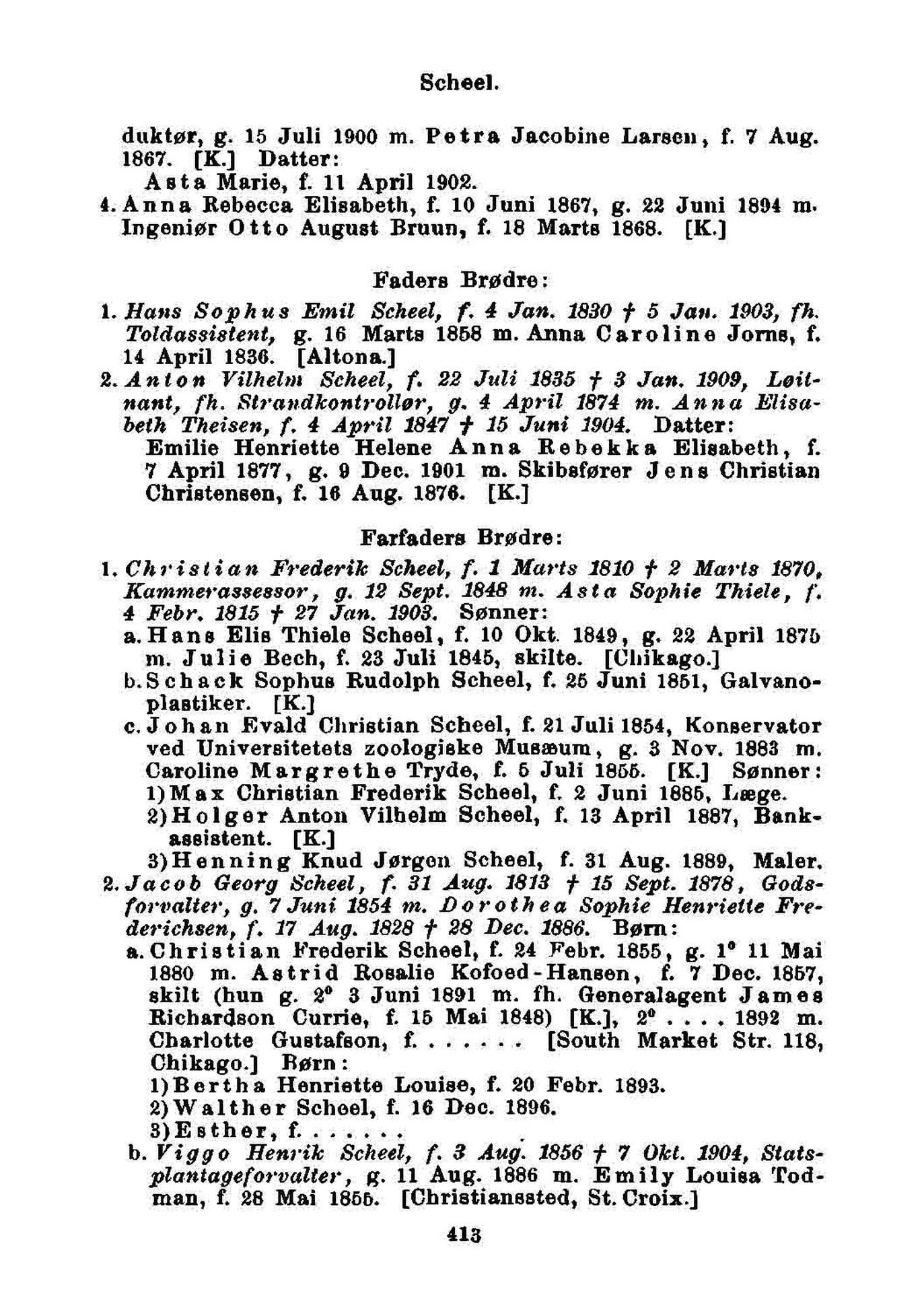 1)Max Christian Frederik Scheel, f. 2 Juni 1885, Læge.