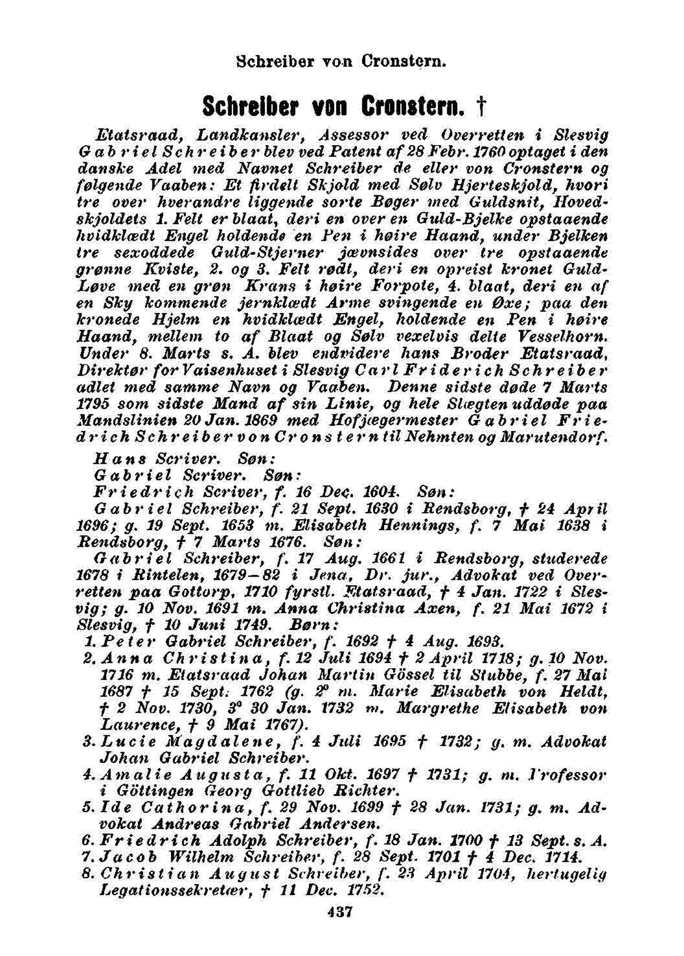 danske Adel med Navnet Schreiber de eller von Cronstern og