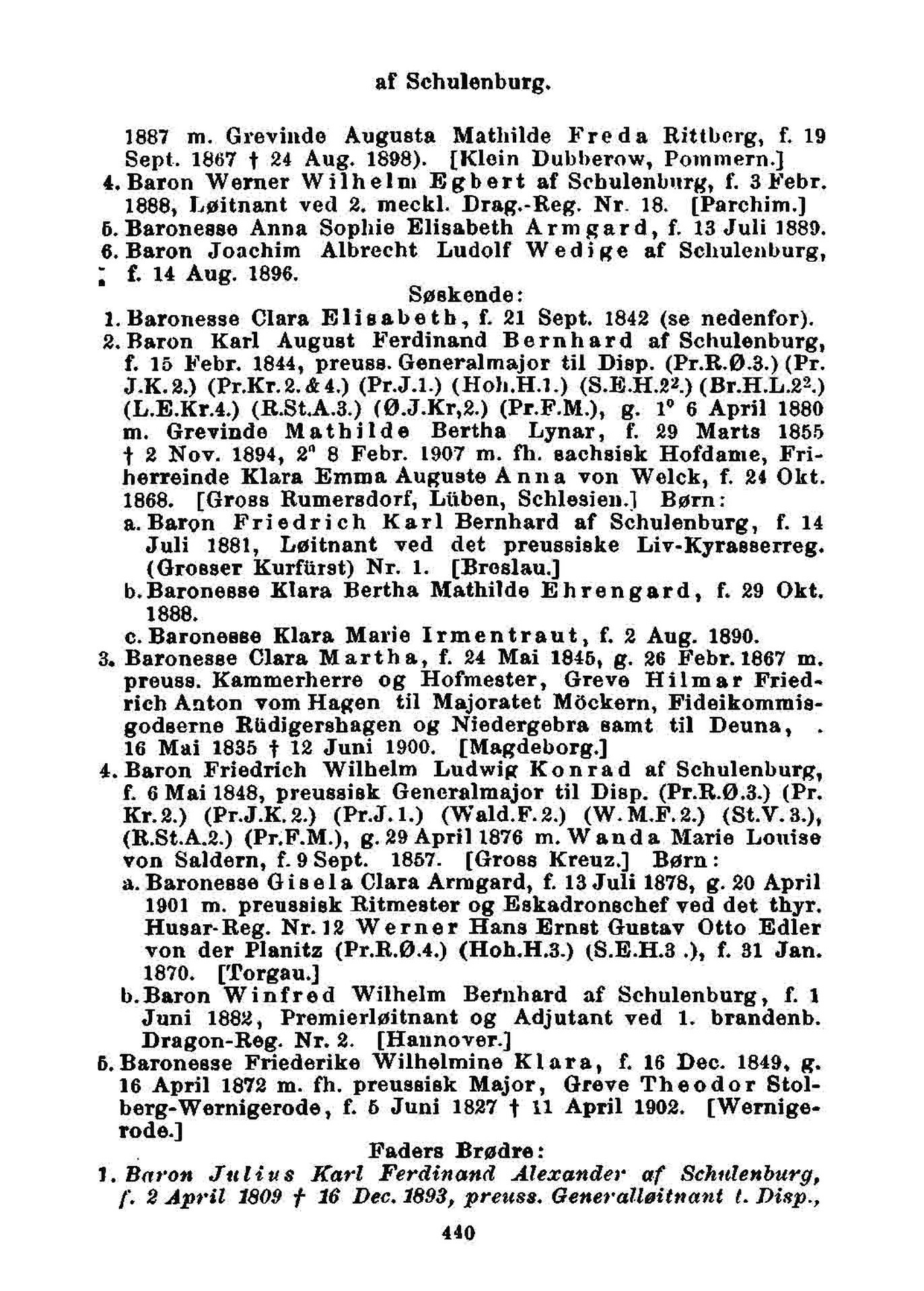 4, Baron Werner Wilhelm Egbert af Schulenburg, f. 3 Febr.