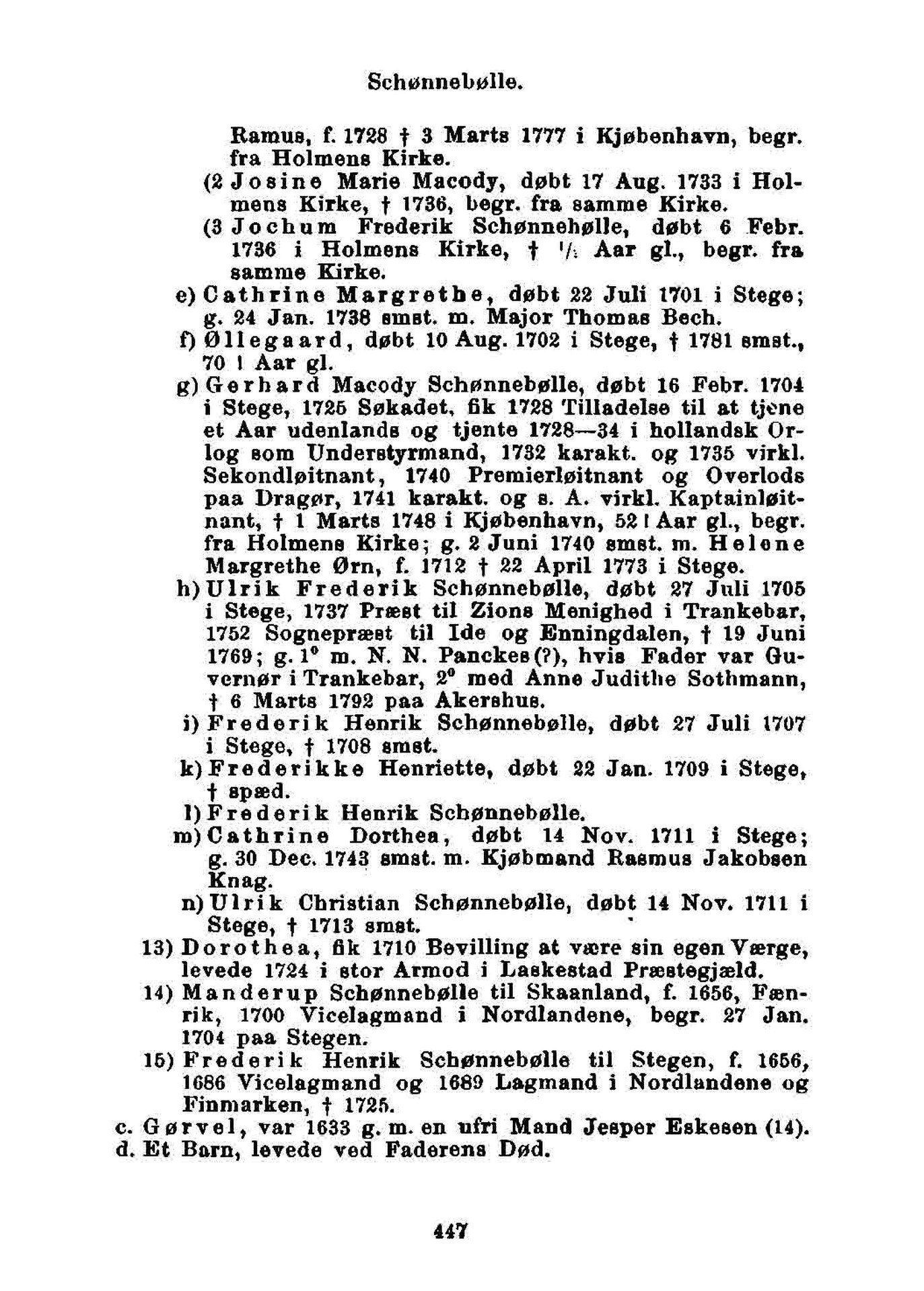 g)Gerhard Macody Schønnebølle, døbt 16 Febr. 1704
