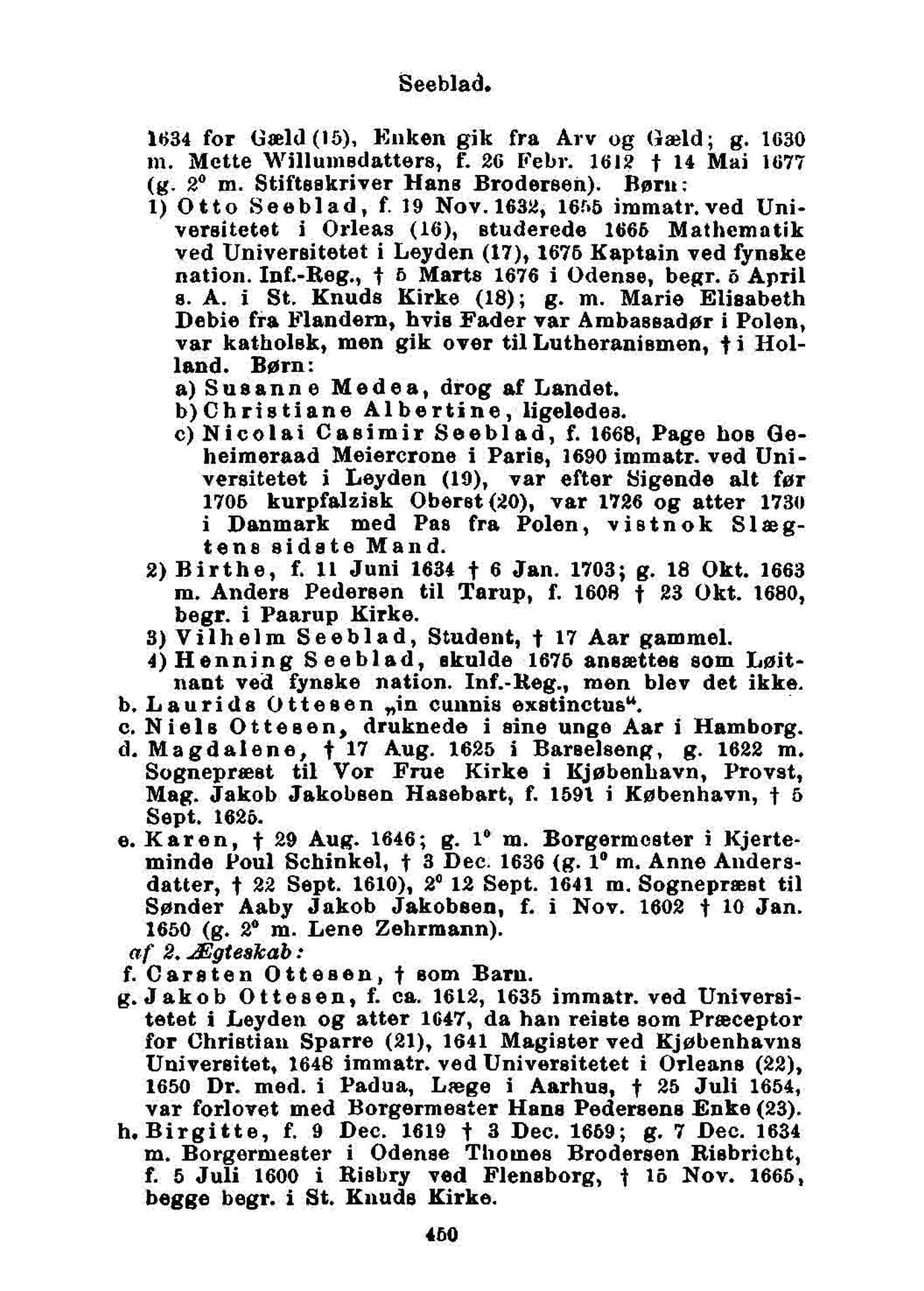 1) Otto Seeblad, f. 19 Nov. 1632, 1655 immatr, ved Uni-