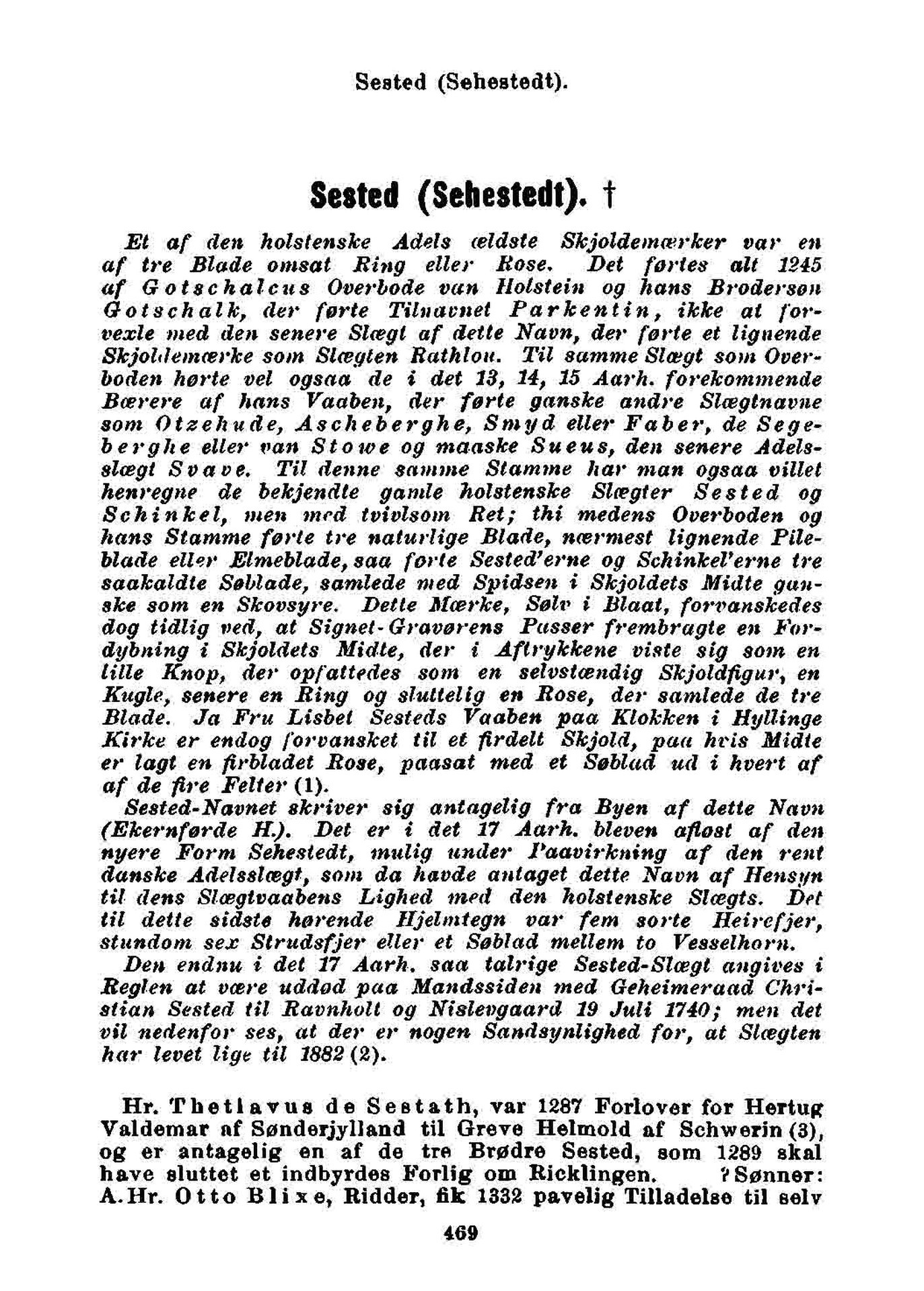 Den endnu i det 17 Aarh, saa talrige Sested-Slægt angives i