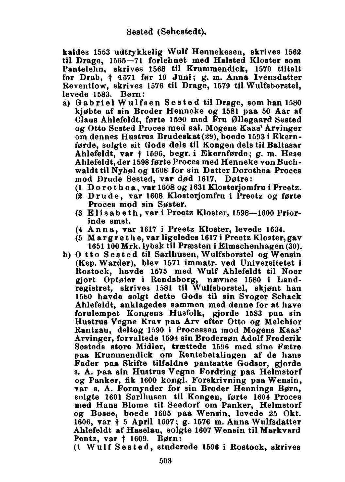 (1 Wulf Sested, studerede 1596 i Rostock, skrives