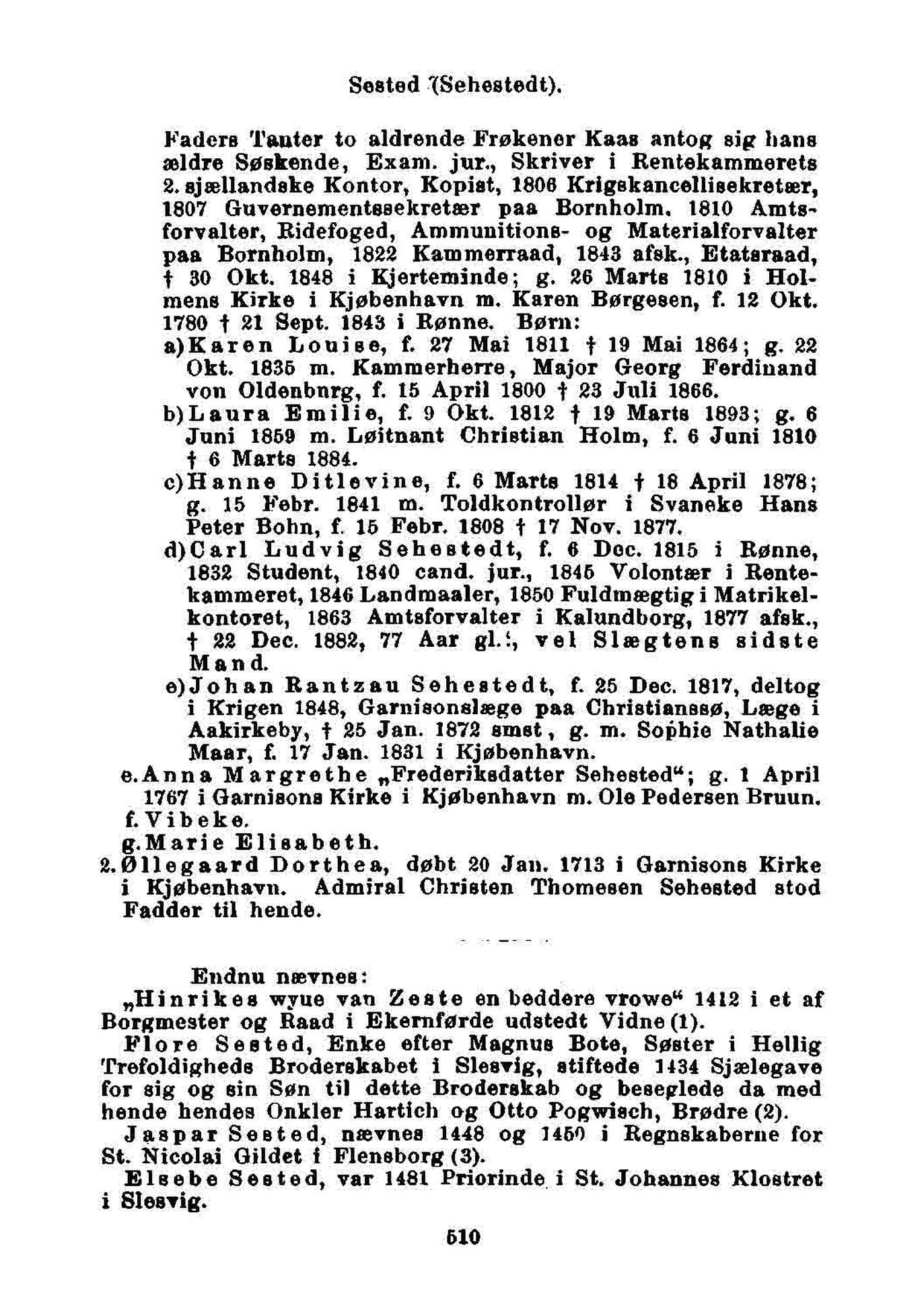 d)Carl Ludvig Sehestedt, f. 6 Doc. 1815 i Rønne,