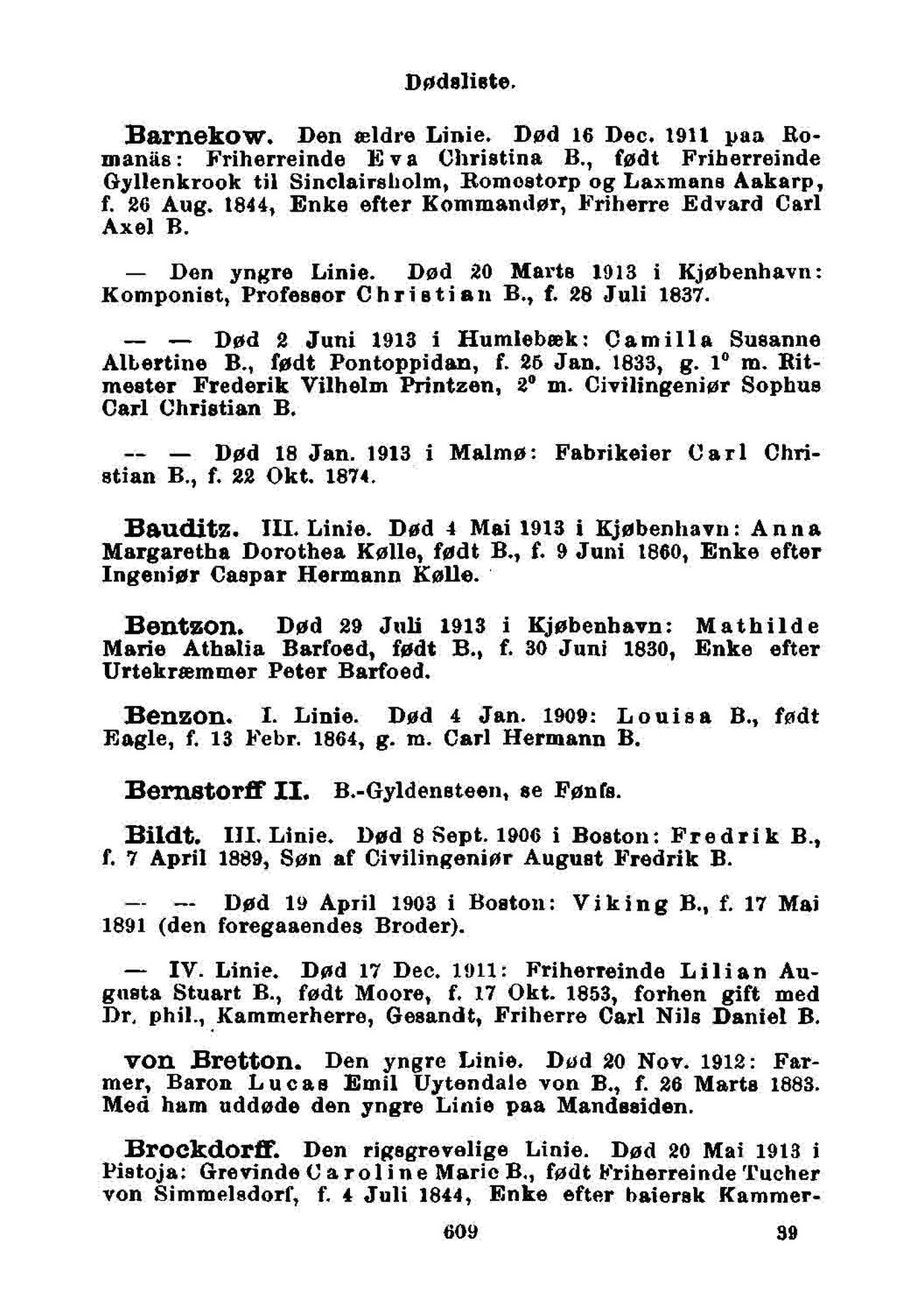 Barnekow. Den ældre Linie. Død 16 Dec. 1911 paa Ro-