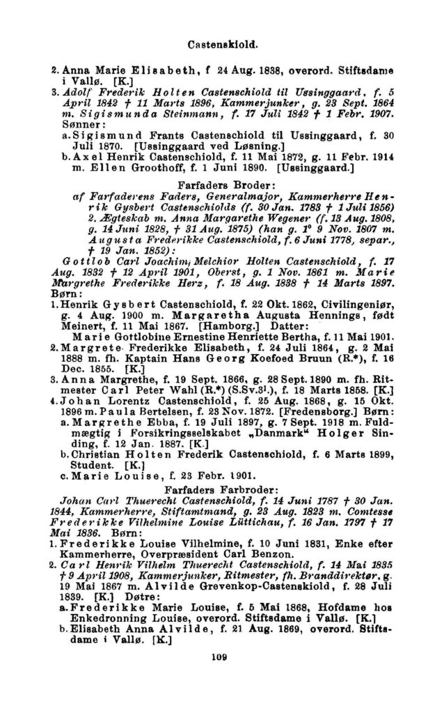 2. Anna Marie Elisabeth, f 24 Aug. 1838, overord. Stiftsdame